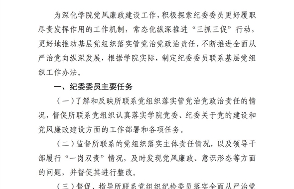 ?中共武威職業(yè)學院紀律檢查委員會委員聯(lián)系基層黨組織工作辦法為深化學院黨風廉政建設工作,積極…