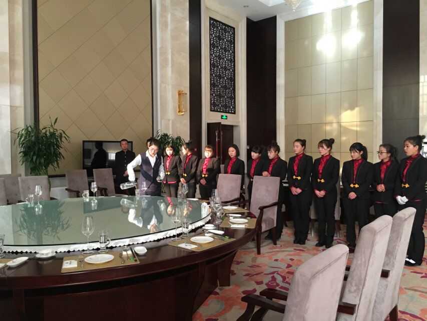 實(shí)訓(xùn)期間,同學(xué)們通過誦讀,軍訓(xùn)等方式體驗(yàn)了酒店的企業(yè)文化,在客房部,同學(xué)們向酒店客房服務(wù)員學(xué)習(xí)并實(shí)踐了如何對(duì)客房進(jìn)行清掃及查房,熟悉了客房部的日常工作規(guī)程;在餐飲部實(shí)習(xí)中,同學(xué)們向資深的餐廳服務(wù)員學(xué)習(xí)了如何擺臺(tái)、撤臺(tái)、點(diǎn)菜、上菜等一系列基本的餐廳服務(wù)方法,并對(duì)餐廳的服務(wù)流程有了具體的了解。