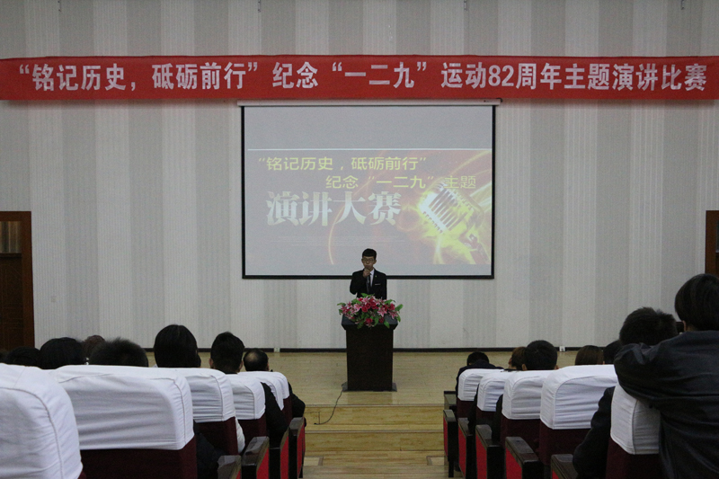 為紀(jì)念一二·九學(xué)生愛國(guó)運(yùn)動(dòng)82周年,弘揚(yáng)新時(shí)代學(xué)生愛國(guó)主義精神,12月8日下午,能源工程系在正德廳舉行了“銘記歷史砥礪前行”主題演講比賽,系上全體師生參加此次活動(dòng)。