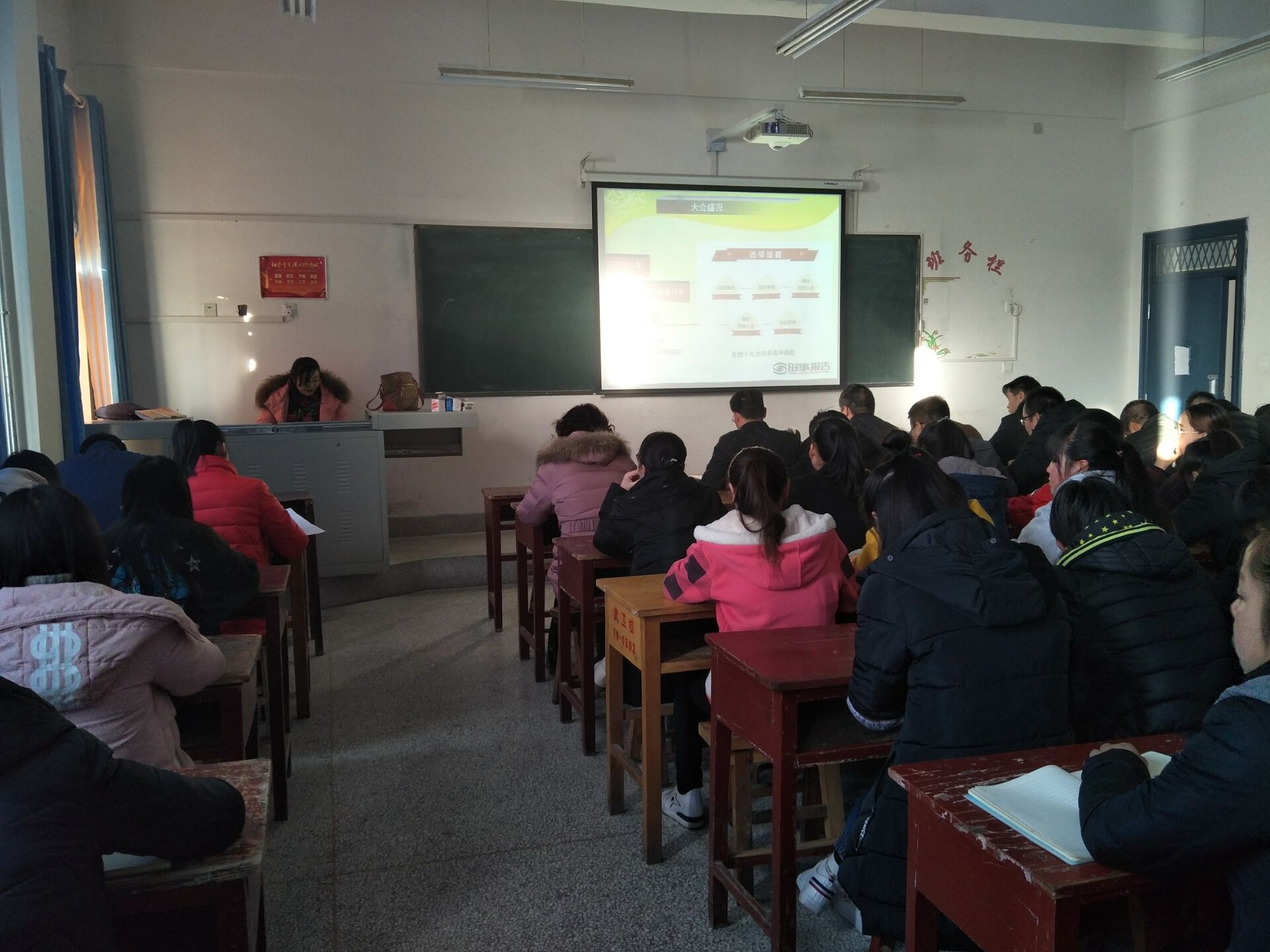 王靜以《不忘初心、牢記使命,深入學習黨的十九大會議精神》為題,從大會盛況及主要成果、十九大報告主要精神和亮點、黨章修改的主要內容三個方面宣講黨的十九大報告,領悟黨的十九大精神。