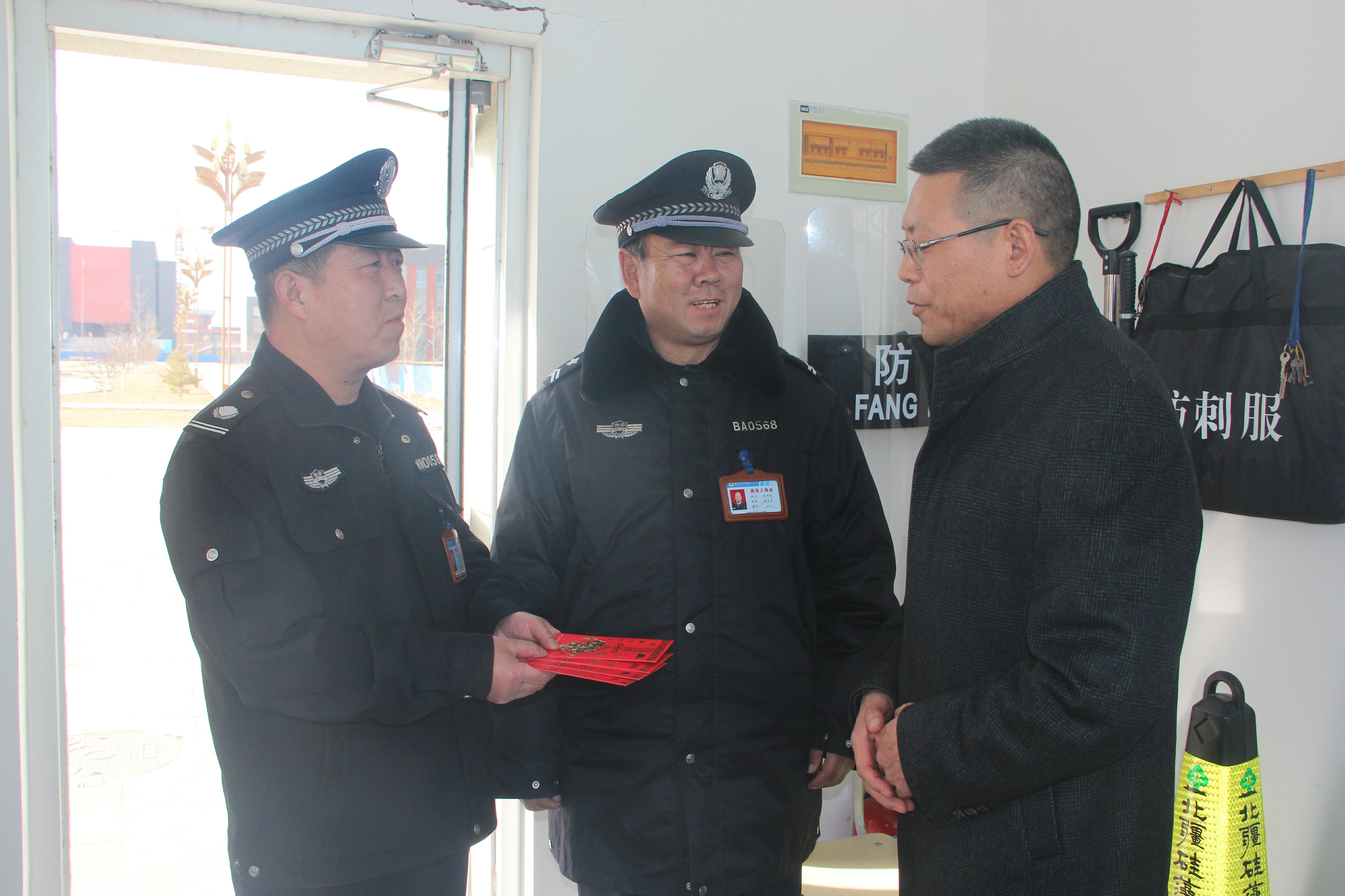 王永緒先后來到學(xué)院東大門門衛(wèi)室、鍋爐房和西小門門衛(wèi)室看望工作人員,并送上新春的祝福。王永緒詳細(xì)詢問了假期安保、后勤保障等工作情況,對(duì)他們一年來的辛勤付出表示衷心的感謝,叮囑他們安排好春節(jié)期間的工作和生活,堅(jiān)守工作崗位,維護(hù)好校園安全穩(wěn)定,確保大家過一個(gè)平安、喜慶、祥和的春節(jié)。