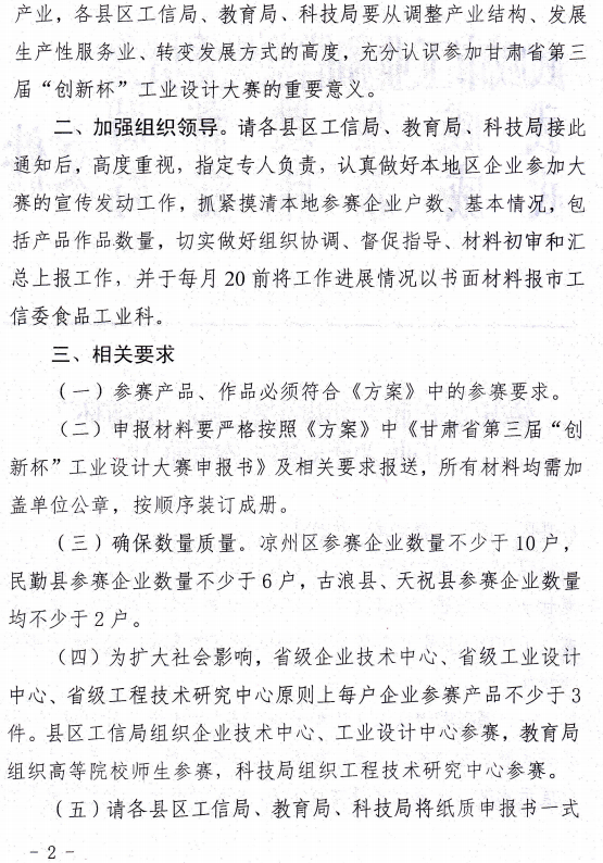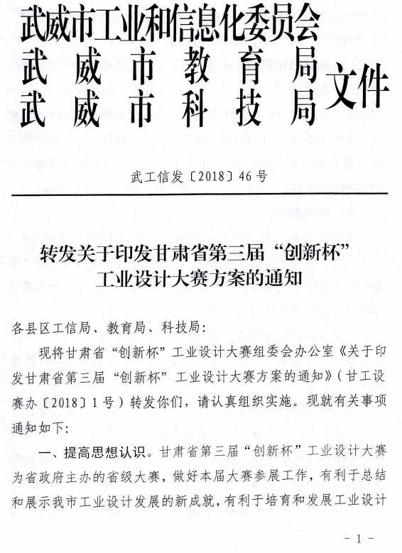 甘肅省“創(chuàng)新杯”工業(yè)設(shè)計(jì)大賽組委會(huì)辦公室關(guān)于印發(fā)甘肅省第三屆“創(chuàng)新杯”工業(yè)設(shè)計(jì)大賽方案的通知