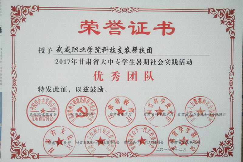 活動結(jié)束后,根據(jù)《關于開展2017年甘肅省大中專學生志愿者暑期文化科技衛(wèi)生“三下鄉(xiāng)”社會實踐活動的通知》要求,我系組織的科技支農(nóng)幫扶團集體和個人被評為甘肅省暑期“三下鄉(xiāng)”社會實踐活動先進集體和個人。
