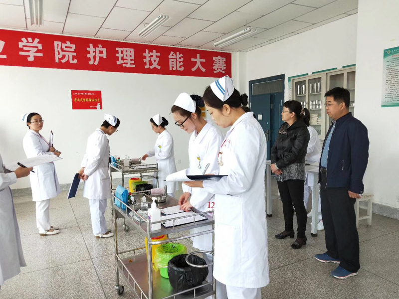 為提高實踐教學(xué)質(zhì)量和學(xué)生的技能操作水平,學(xué)院于4月28日舉辦了第五屆護理技能大賽,16級護理、助產(chǎn)兩個專業(yè)的72名同學(xué)參加了競賽,學(xué)院副院長田迎春、護理系黨總支書記張建輝、護理系主任韓曉萍在現(xiàn)場觀看了此次比賽。