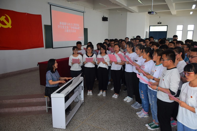 為更好地激發(fā)學(xué)生黨員的愛黨、愛國熱情,增強(qiáng)黨性,增強(qiáng)組織生活的儀式感和嚴(yán)肅性,新能源與動力工程學(xué)院學(xué)生黨支部于5月31日下午在明德樓001教室舉辦“重溫國歌,學(xué)唱國際歌”主題黨日活動。本次活動邀請人文藝術(shù)教育系王小娟老師做藝術(shù)教學(xué)指導(dǎo)。