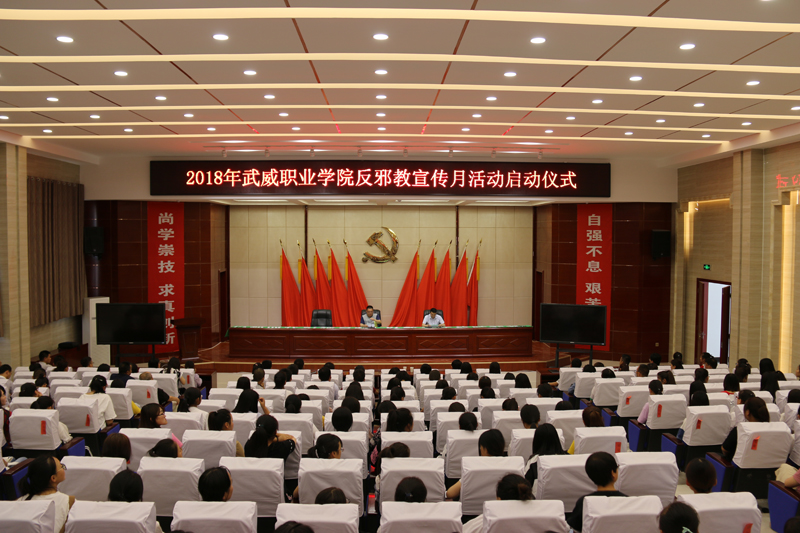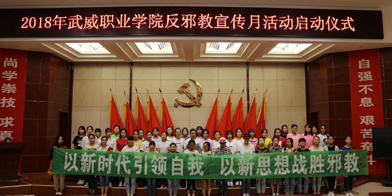 根據(jù)省教育廳印發(fā)的“2018年全省教育系統(tǒng)反邪教宣傳月宣傳周宣傳日活動(dòng)方案”要求,學(xué)院集中開展以“抵制邪教、和諧校園”為主題的反邪教宣傳教育活動(dòng)。6月14日,學(xué)院舉行了“武威職業(yè)學(xué)院2018年反邪教宣傳月活動(dòng)啟動(dòng)儀式”及師生簽名活動(dòng),師生代表共220余人參加了啟動(dòng)儀式,啟動(dòng)儀式由宣傳統(tǒng)戰(zhàn)部部長王繼林主持。