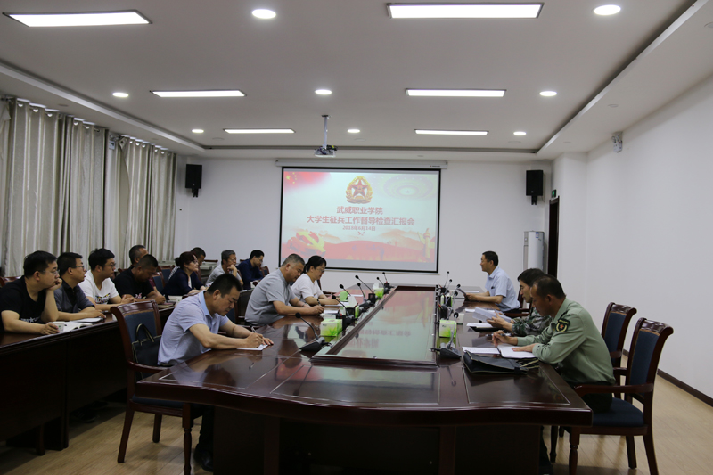 6月14日上午,由武威軍分區(qū)副司令員丁全綱帶隊(duì),市教育局督學(xué)張應(yīng)偉、涼州區(qū)人武部政委丁俊強(qiáng)、涼州區(qū)人武部副部長韓小偉、涼州區(qū)西關(guān)街武裝部部長趙光慶一行5人到我院督導(dǎo)檢查征兵工作,學(xué)院副院長田迎春、學(xué)工處處長王守云陪同檢查。各系黨總支書記、輔導(dǎo)員參加了匯報會,田迎春主持會議。