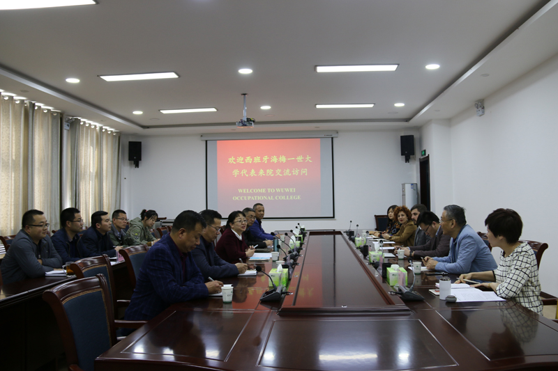 座談會上,田迎春代表全院師生對海梅一世大學(xué)到訪學(xué)院表示歡迎,對省國際交流與合作服務(wù)中心對學(xué)院的關(guān)心表示感謝,并向來訪客人簡要介紹了武威文化歷史、學(xué)院建設(shè)發(fā)展情況、學(xué)院國際交流與合作開展情況。來訪客人對學(xué)院近年來的巨大發(fā)展表示贊賞,對學(xué)院國際交流與合作開展工作表示肯定。Ana女士通過PPT展示介紹了海梅一世大學(xué),希望雙方進(jìn)一步進(jìn)行合作。賓主雙方還就校際交流、語言培訓(xùn)、赴西班牙專升碩留學(xué)項(xiàng)目等共同關(guān)心的問題進(jìn)行了深入交流。