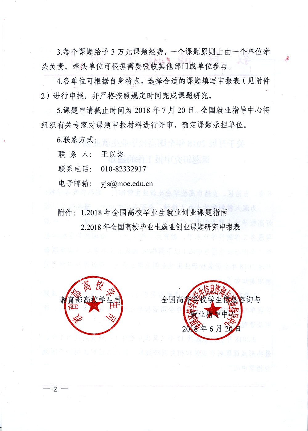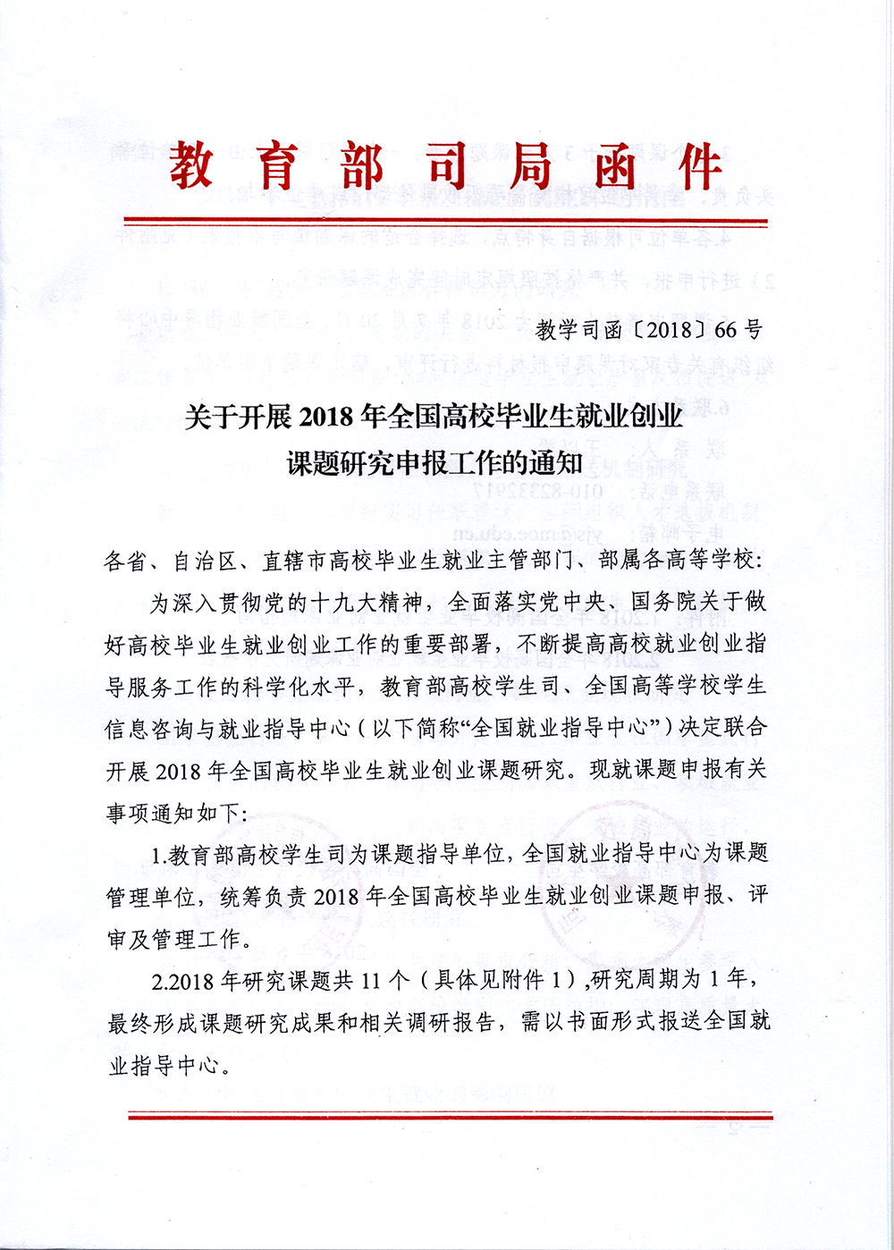 關(guān)于開展2018年全國高校畢業(yè)生就業(yè)創(chuàng)業(yè)課題研究申報工作的通知(附件1、附件2)