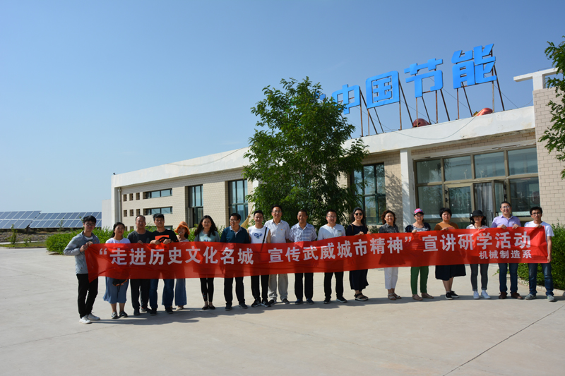 為加強對武威城市精神的宣傳詮釋力度,感受“天馬星空,自在武威”的文化旅游形象主題宣傳口號,深入挖掘武威歷史文化名城內(nèi)涵,探索武威文化旅游融合發(fā)展的新思路、新方法、新途徑,提高學(xué)院服務(wù)社會的功能,豐富教職工的精神文化生活。機(jī)械制造系全體教師赴武威金太陽新能源高新技術(shù)集中區(qū)開展“走進(jìn)歷史文化名城,宣傳武威城市精神”宣講研學(xué)活動。