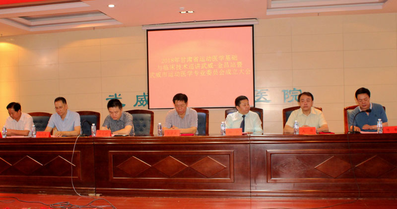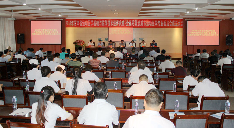 由甘肅省醫(yī)學會運動醫(yī)學專業(yè)委員會主辦,學院直屬附屬醫(yī)院承辦的“2018年甘肅省運動醫(yī)學基礎與臨床技術巡講暨武威市運動醫(yī)學專業(yè)委員會成立大會”于7月7日早上8點30分,在學院直屬附屬醫(yī)院內科七樓會議大廳隆重舉行。