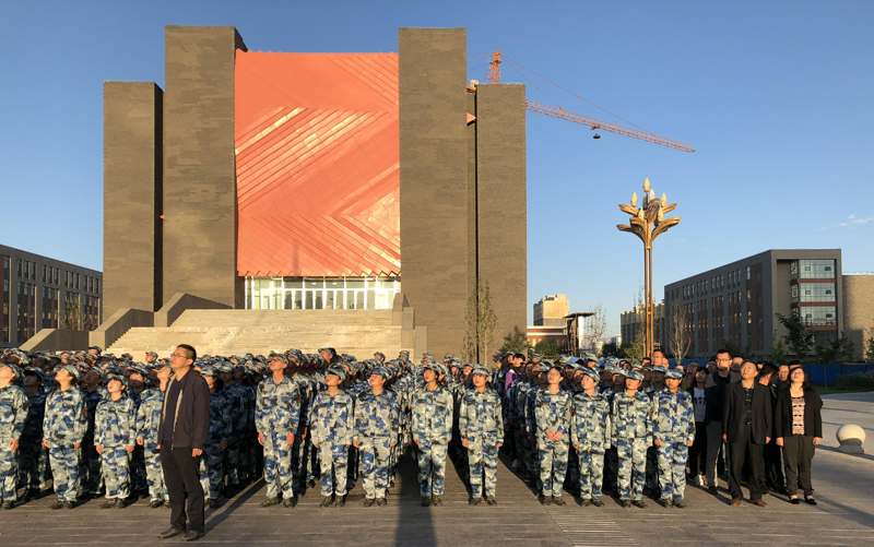 師生們精神飽滿,抬頭挺胸,伴著《義勇軍進行曲》的響起,唱國歌、行注目禮,莊嚴肅穆。