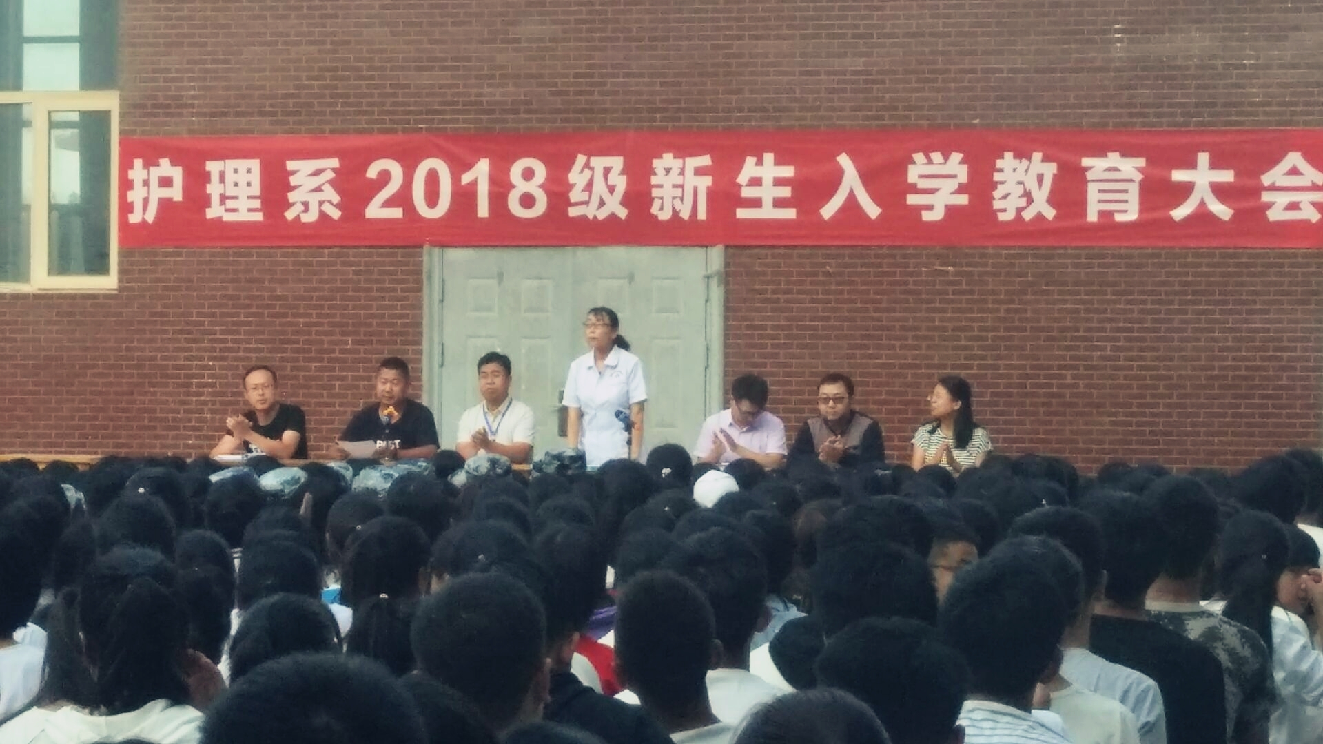 ? ? 大會中韓主任對2018級新生致歡迎詞,護理系黨總支書記張建輝將護理系的歷史以及未來發(fā)展進行了客觀正確的解說,讓新生充分了解學(xué)校,認(rèn)識自己,做好規(guī)劃,充實生活。他希望同學(xué)們勇于追夢,為青春留下奮斗的汗水、拼搏的足跡,鐫刻無悔的大學(xué)生活,書寫壯麗的人生篇章。活動最后在輔導(dǎo)員楊杰老師對軍訓(xùn)時的注意事項總結(jié)中落下了尾聲。此次大會,各位負(fù)責(zé)人對護理系的發(fā)展抱有絕對的期望,對新同學(xué)的未來成長獻上了美好的祝福。