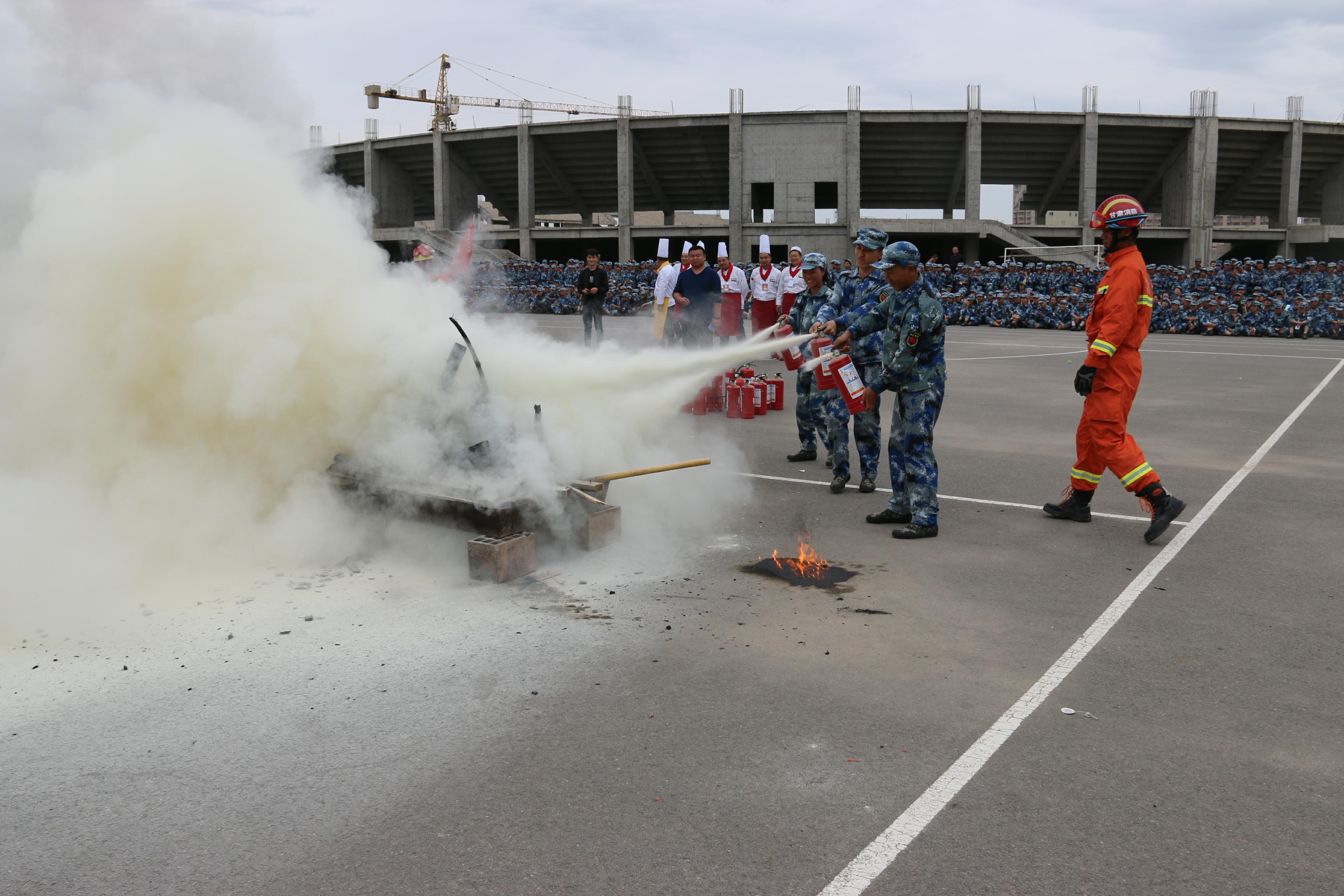 隨后,所有參演學(xué)生整隊(duì)到操場(chǎng)參加了滅火演練。在消防官兵的講解和和示范下,同學(xué)們體驗(yàn)了處置著火液化氣瓶、干粉滅火器滅火、穿消防救生衣、通過模擬煙室等操作。