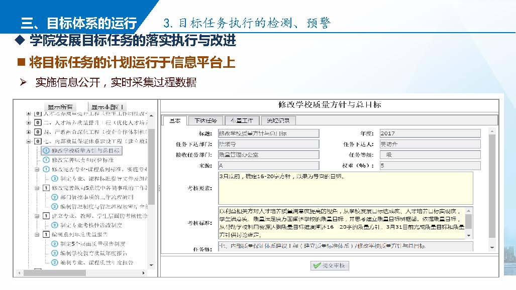 學(xué)院目標(biāo)任務(wù)體系建立與運(yùn)行實(shí)物