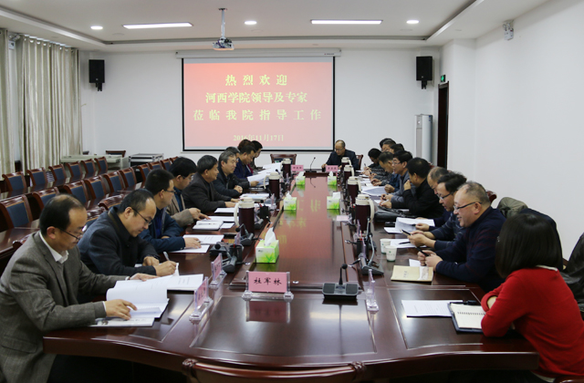 11月17日下午,河西學(xué)院副校長張漢燚帶隊(duì)該院相關(guān)學(xué)院、部門負(fù)責(zé)人10余人到我院考察交流。武威市教育局黨組書記、副局長蔣永紅,我院黨委副書記趙明,相關(guān)部門負(fù)責(zé)人陪同考察。