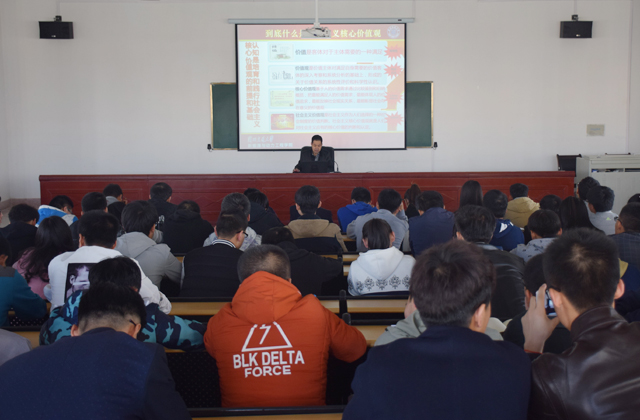 翟存祥從社會(huì)主義核心價(jià)值觀的時(shí)代背景、社會(huì)主義核心價(jià)值觀的頂層設(shè)計(jì)、核心價(jià)值觀與核心價(jià)值體系的關(guān)系、社會(huì)主義核心價(jià)值觀的系統(tǒng)培育、社會(huì)主義核心價(jià)值觀的全面踐行等五個(gè)方面,分析了中國(guó)共產(chǎn)黨價(jià)值取向的發(fā)展歷程、培育和踐行社會(huì)主義核心價(jià)值觀的重要性和迫切性,培育和踐行社會(huì)主義核心價(jià)值觀對(duì)實(shí)現(xiàn)中國(guó)夢(mèng)的重要現(xiàn)實(shí)意義和深遠(yuǎn)歷史意義,以及培育和踐行社會(huì)主義核心價(jià)值觀的措施等問(wèn)題,并對(duì)為什么要培育和踐行、怎么培育和踐行作了系統(tǒng)和精彩的解讀。翟存祥指出,十八大報(bào)告將社會(huì)主義核心價(jià)值觀凝練為24個(gè)字:“富強(qiáng)、民主、文明、和諧;自由、平等、公正、法治;愛(ài)國(guó)、敬業(yè)、誠(chéng)信、友善”,從國(guó)家、社會(huì)、個(gè)人三個(gè)層面,簡(jiǎn)單扼要、簡(jiǎn)約樸實(shí)、簡(jiǎn)潔通俗地提出了社會(huì)主義核心價(jià)值觀的新表達(dá),也為當(dāng)今中國(guó)社會(huì)的核心價(jià)值觀構(gòu)建提出了新要求。社會(huì)主義核心價(jià)值觀既有理論的延續(xù)性,又有現(xiàn)實(shí)的針對(duì)性;既有目標(biāo)追求,又有價(jià)值導(dǎo)向,還有行為準(zhǔn)則,是人心所愿、眾望所歸。翟存祥結(jié)合學(xué)院發(fā)展實(shí)際,要求學(xué)生黨員及班團(tuán)干部從現(xiàn)在做起,從自己做起,努力向上,踐行社會(huì)主義核心價(jià)值觀,追求有信念,有夢(mèng)想,有奮斗,有奉獻(xiàn)的人生,讓自己的人生更有意義。