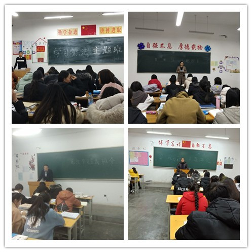 為深入學(xué)習(xí)貫徹習(xí)近平新時代中國特色社會主義思想和黨的十九大精神,牢固樹立“四個意識”,進一步維護憲法法律權(quán)威,強力推進法治校園建設(shè),扎實做好校園憲法學(xué)習(xí)宣傳普及工作,營造尊法、學(xué)法、守法、用法的濃厚氛圍,在第五個國家憲法日來臨之際,藥學(xué)系召開會議安排部署了學(xué)習(xí)憲法各項活動,各班級也分別召開了“學(xué)習(xí)憲法”主題班會。