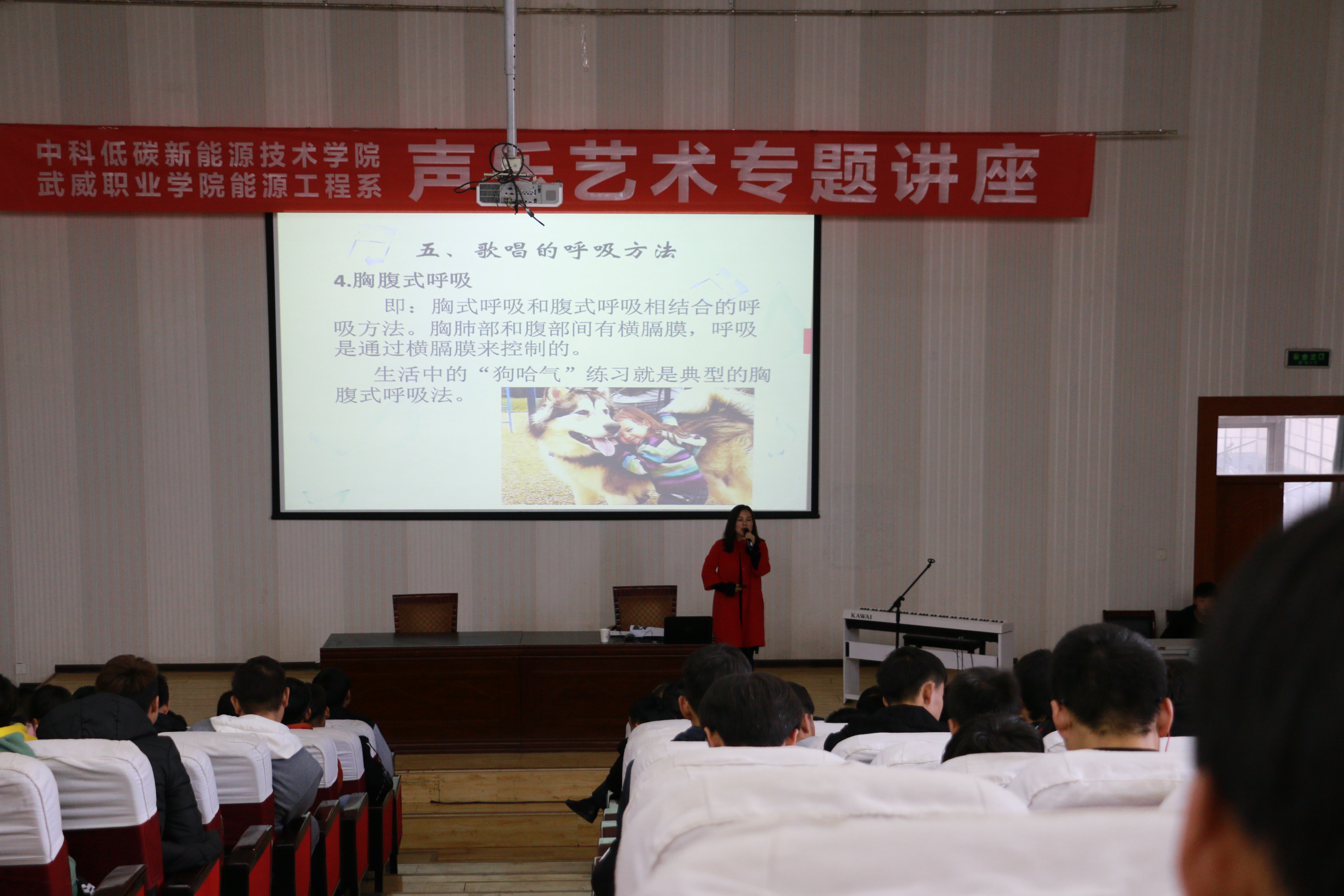 11月15日,學院邀請人文藝術教育系聲樂教師王小娟為18級新生舉辦了一場聲樂藝術專題講座,講座由能源工程系黨總支書記黃文源主持,部分教師參加了講座。
