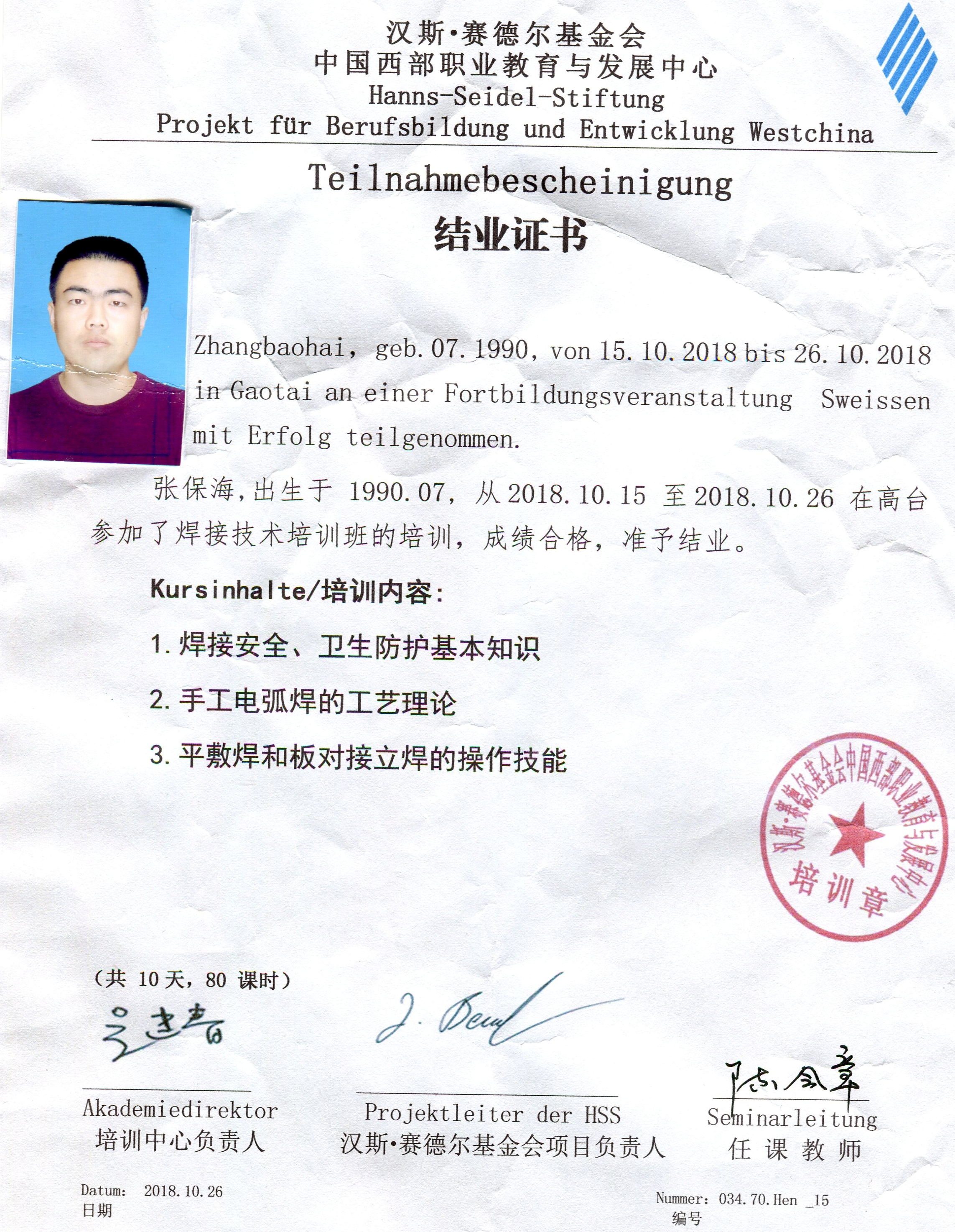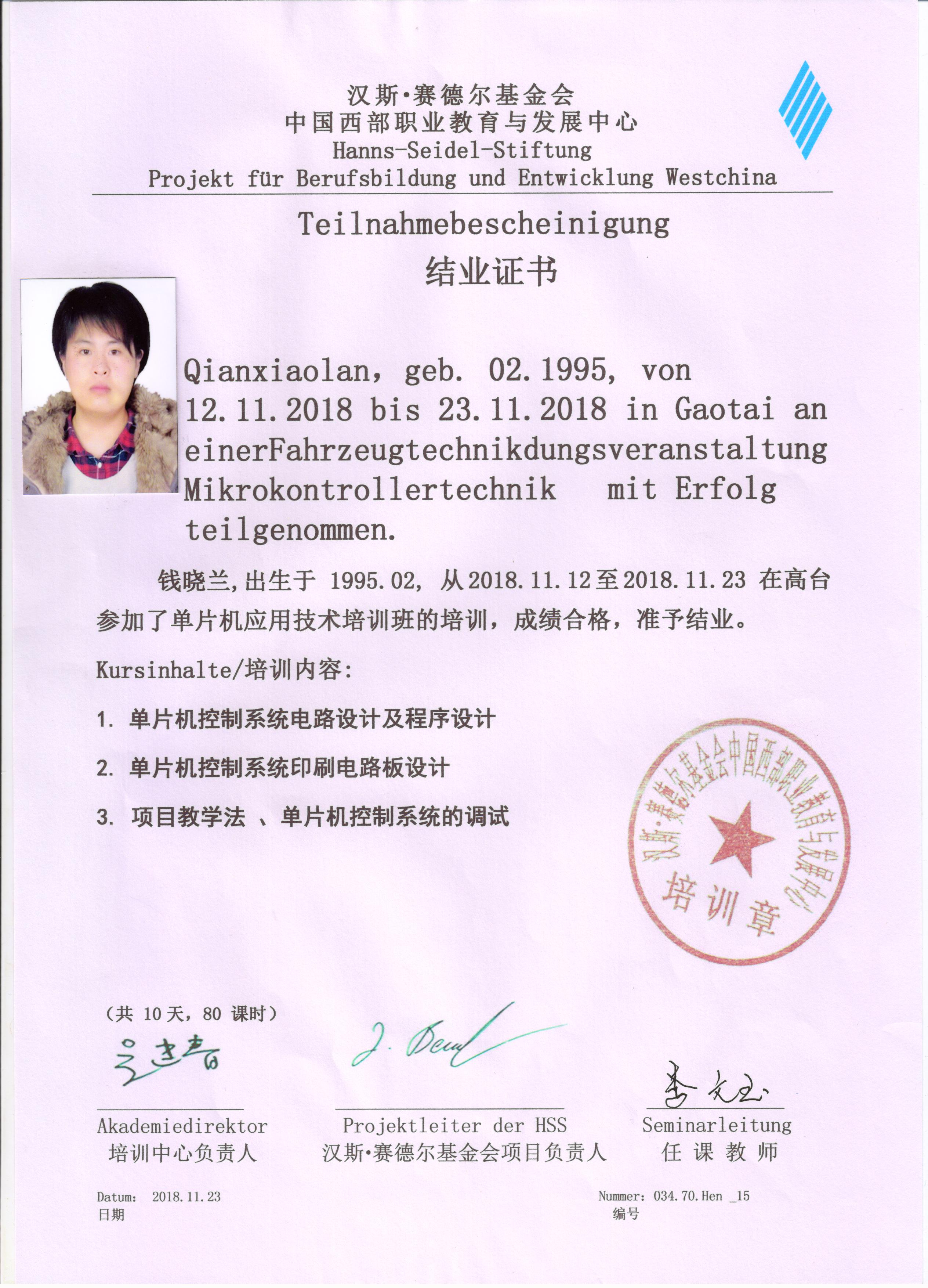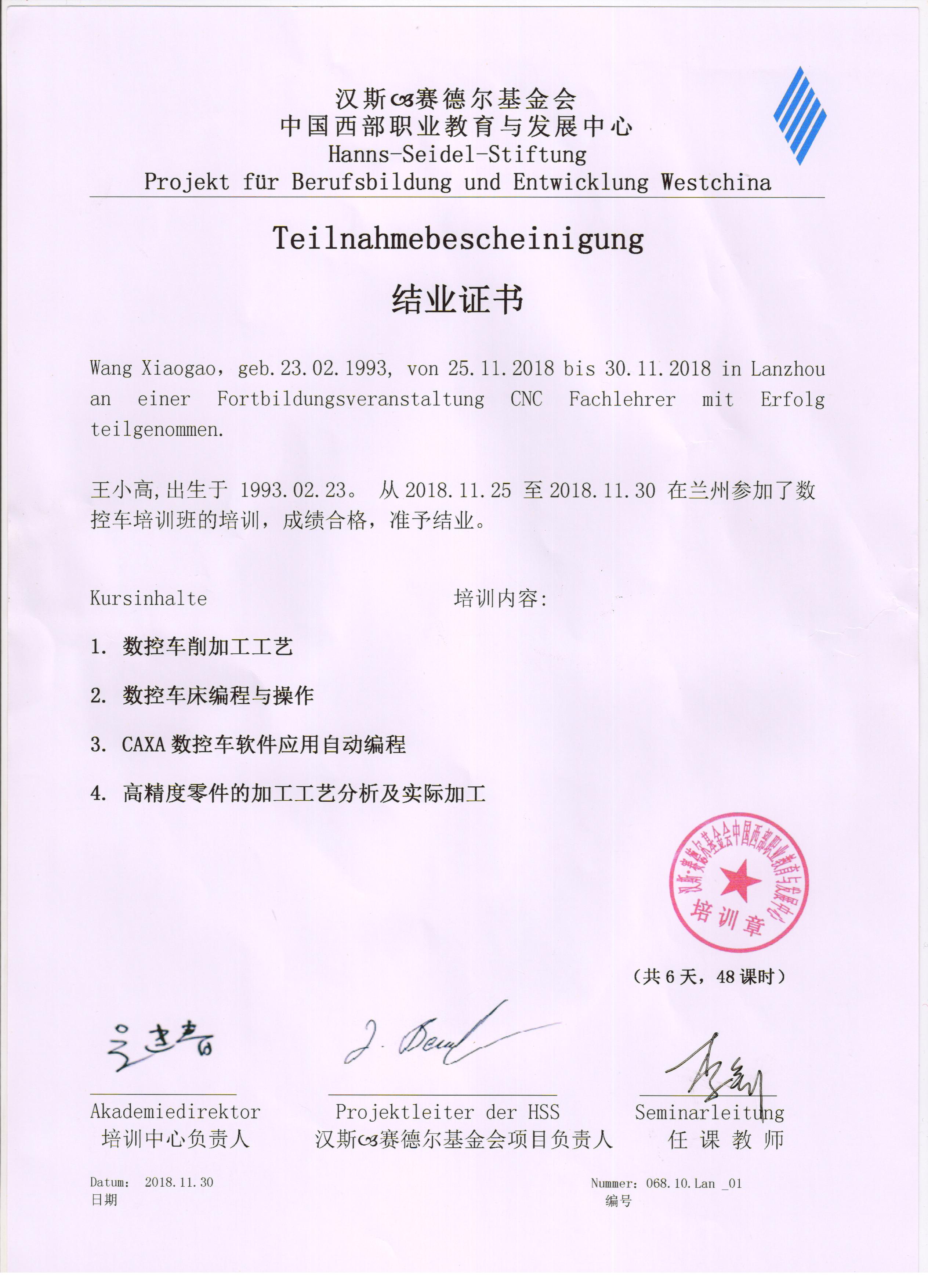 參加德國漢斯?賽德爾基金會職業(yè)院校2018年秋季培訓(xùn)