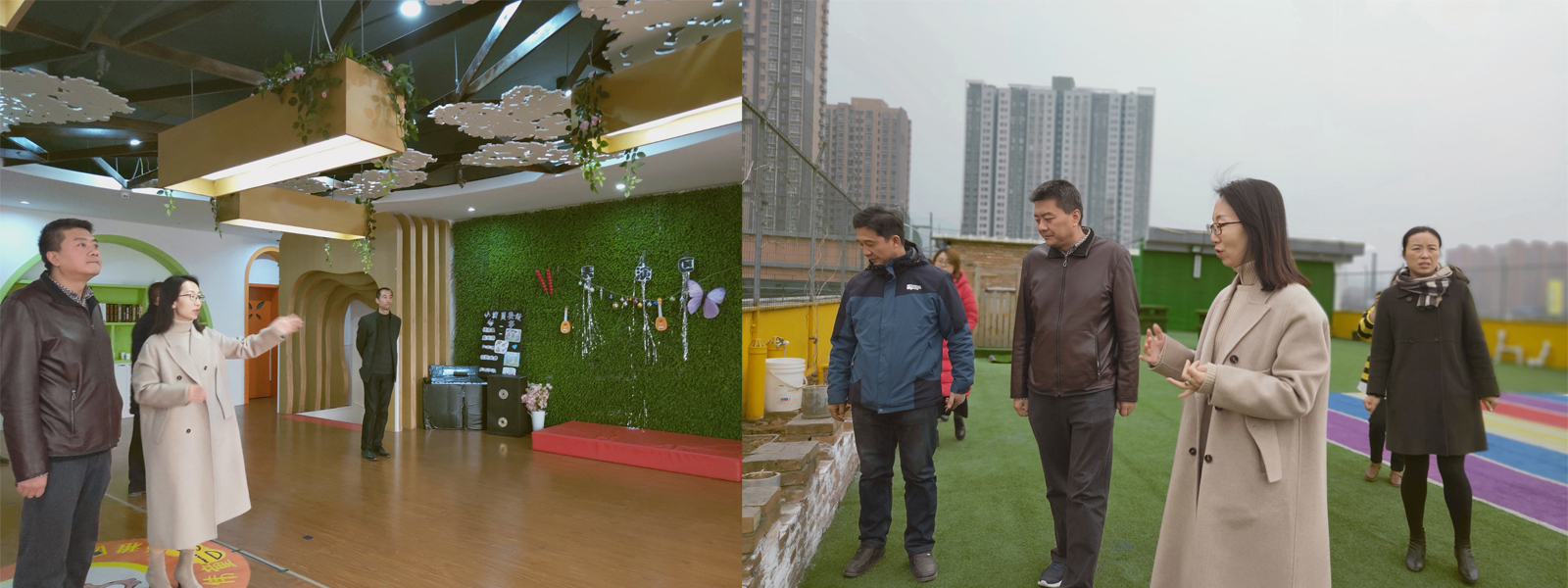陜西臨潼偉童幼兒園高老師與考察組成員親切座談并陪同考察組成員參觀了幼兒園各個場所。