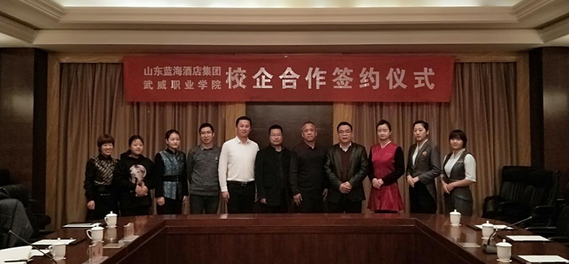 2018年12月21日,武威職業(yè)學(xué)院經(jīng)濟(jì)管理系書記潘從民、主任張伯成一行4人到東營(yíng)市山東藍(lán)海酒店集團(tuán)考察、洽談,同時(shí)參加校企戰(zhàn)略合作簽約。