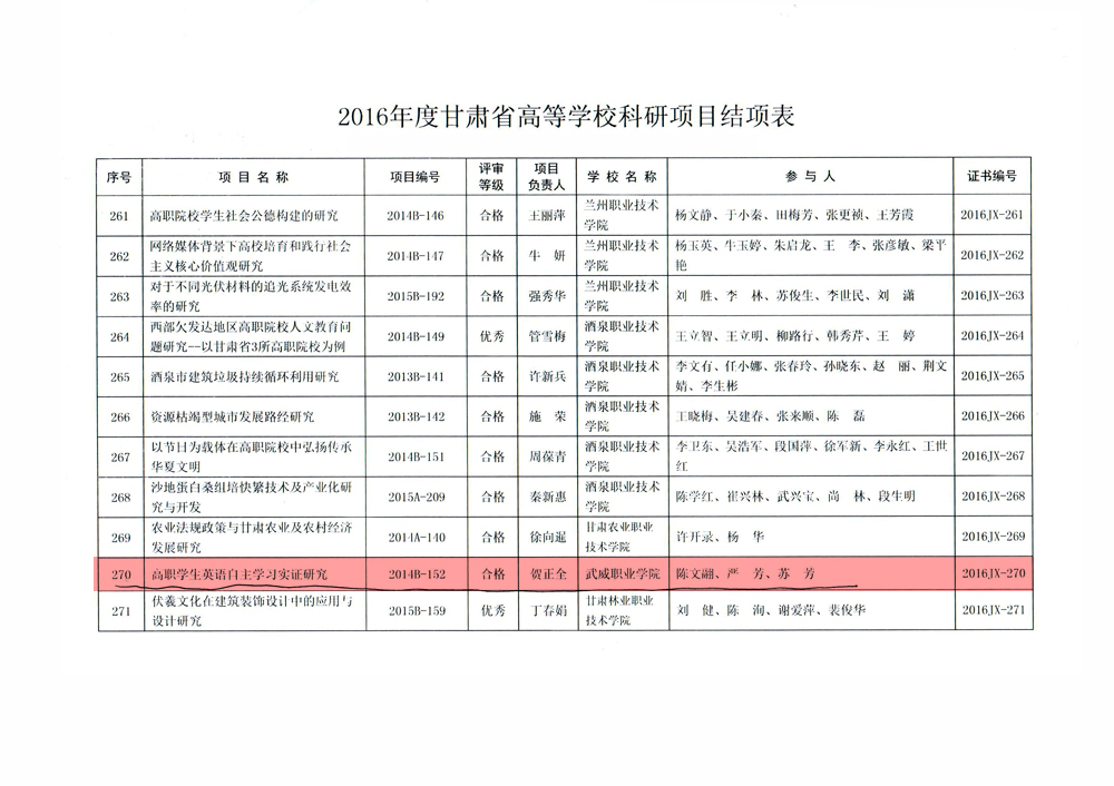 轉發(fā)甘肅省教育廳關于2016年度甘肅省高等學??蒲许椖拷Y項情況的通知