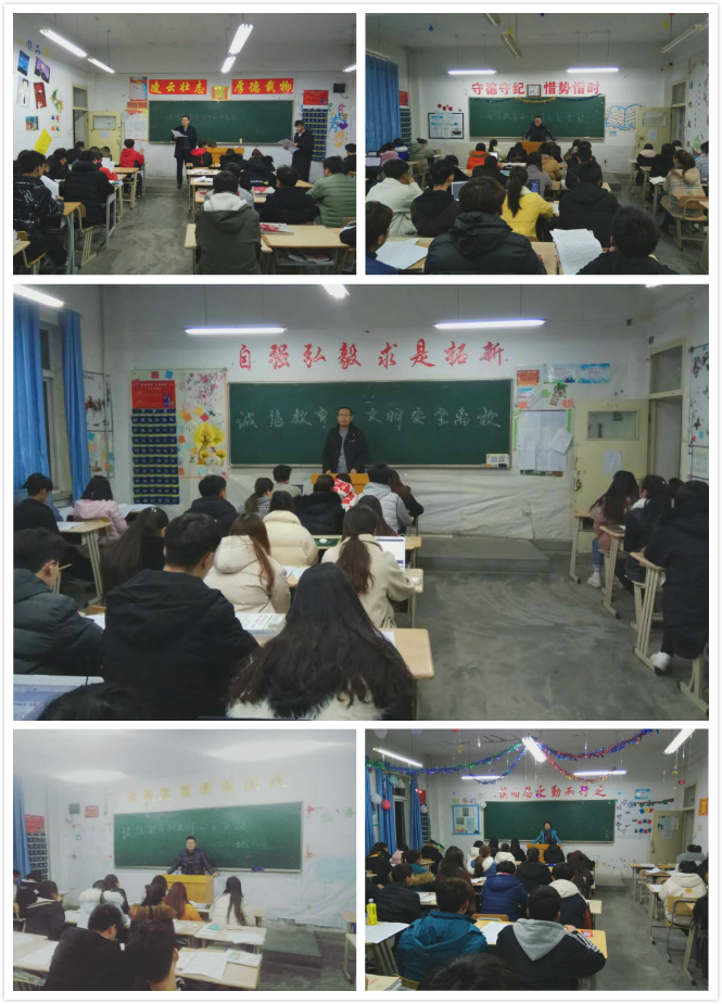 會(huì)后,各班主任深入班級(jí)召開(kāi)了“誠(chéng)信教育和文明安全離?!敝黝}班會(huì)。