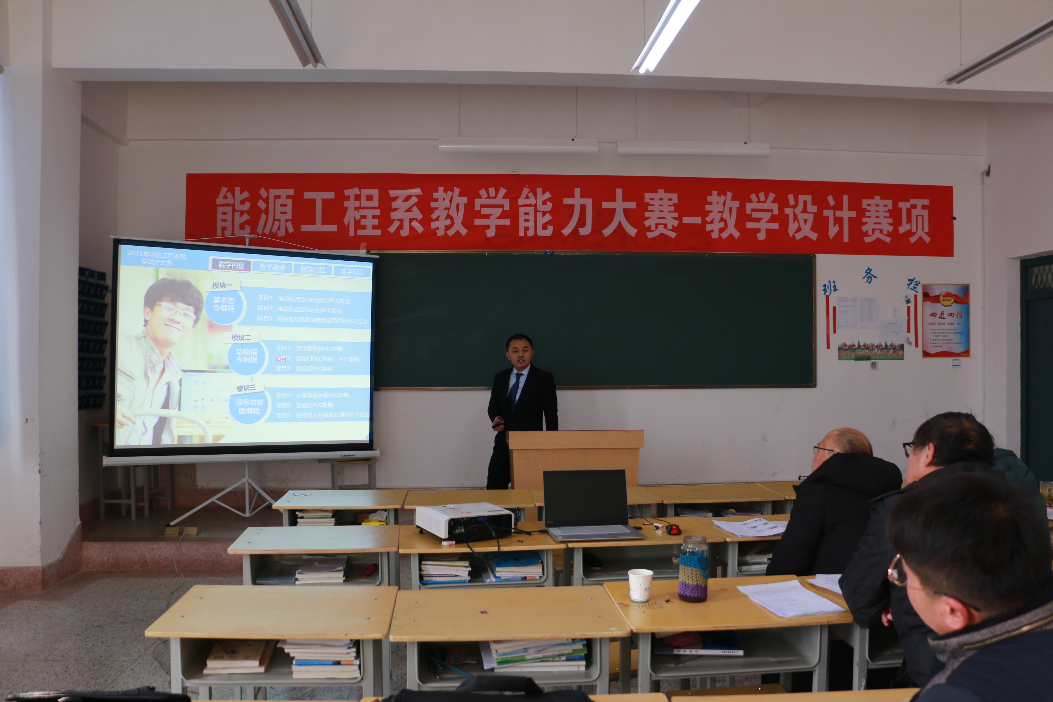 為進(jìn)一步加強(qiáng)青年教師隊(duì)伍建設(shè),引導(dǎo)青年教師深化課堂教學(xué)改革,提高課堂教學(xué)質(zhì)量,近期,能源工程系青年教師教學(xué)能力競賽在行樹樓408舉行。本次比賽共有 13名教師參加,系副主任黃述杰主持本次競賽活動(dòng)。