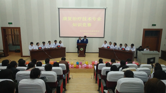 為加強學(xué)風(fēng)建設(shè),鞏固特色專業(yè)建設(shè)成果,增強同學(xué)們對專業(yè)知識的了解,培養(yǎng)同學(xué)們的思維能力、創(chuàng)新能力,提高學(xué)生的競爭力,125日晚,醫(yī)學(xué)技術(shù)與信息管理系在尚德樓正德廳舉行康復(fù)治療技術(shù)專業(yè)知識競賽。學(xué)院基建處處長周興全,系主任楊如松,學(xué)生工作負(fù)責(zé)人魏曙光,院團(tuán)委馬琪老師,系政治輔導(dǎo)員,康復(fù)治療技術(shù)專業(yè)教研室主任、任課教師及全體班主任、學(xué)生代表參加本次活動。
