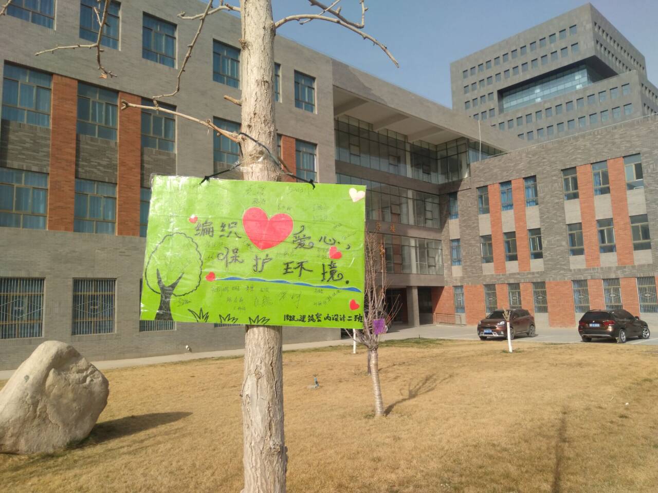 ? ?為助力創(chuàng)建文明城市,構(gòu)建文明綠色環(huán)保校園。4月2日建筑工程系學(xué)生分會(huì)聯(lián)合各班級(jí)在環(huán)境區(qū)域設(shè)立愛護(hù)校園草坪的標(biāo)語牌活動(dòng)。 ? ? ?