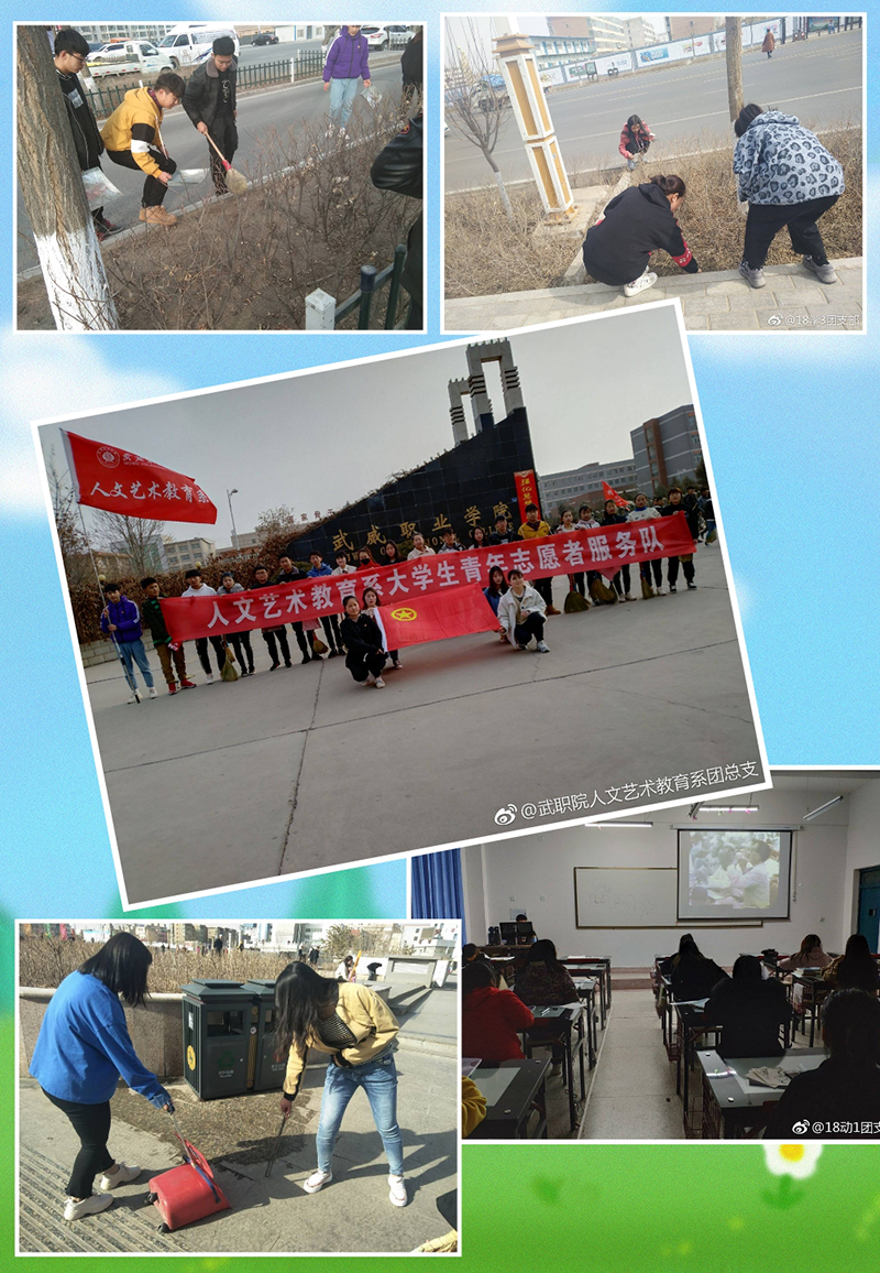 為認真貫徹落實習近平新時代中國特色社會主義思想和黨的十九大精神,進一步加大弘揚“學習雷鋒、奉獻他人、提升自我”的志愿服務理念,在第56個“雷鋒紀念日”之際,人文藝術教育系黨總支安排部署,由系分團委組織開展了以“傳承雷鋒精神 共創(chuàng)文明城市”為主題的系列志愿服務活動。