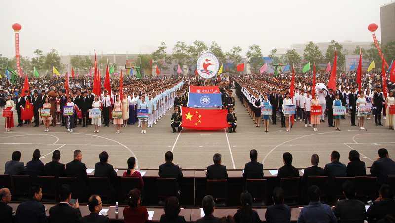 趙明致開幕詞,他代表學(xué)院黨委對(duì)運(yùn)動(dòng)會(huì)的召開表示熱烈的祝賀!向參加本次運(yùn)動(dòng)會(huì)的運(yùn)動(dòng)員、裁判員表示崇高的敬意!向?yàn)榛I備運(yùn)動(dòng)會(huì)而付出辛勤勞動(dòng)的全體工作人員表示衷心的感謝。2018年以來,學(xué)院迎難而上、開拓創(chuàng)新,深化產(chǎn)教融合、校企合作,專業(yè)建設(shè)、師資隊(duì)伍建設(shè)、學(xué)生技能大賽、專升本考試輔導(dǎo)、實(shí)驗(yàn)實(shí)訓(xùn)條件建設(shè)、國際交流合作力度等內(nèi)涵建設(shè)全面推進(jìn),不斷提升辦學(xué)綜合實(shí)力和水平,各項(xiàng)事業(yè)取得新突破、呈現(xiàn)新氣象。這些成績的取得,是全院上下團(tuán)結(jié)拼搏、務(wù)實(shí)工作、傾情奉獻(xiàn)的結(jié)果?!靶闹窃从跉v練,生命在于運(yùn)動(dòng)”。少年強(qiáng)、青年強(qiáng)則中國強(qiáng)。作為新時(shí)代社會(huì)主義建設(shè)者和接班人,更應(yīng)該具備合格的素質(zhì)、強(qiáng)健的體魄,努力為建設(shè)富強(qiáng)民主文明和諧美麗的社會(huì)主義現(xiàn)代化強(qiáng)國貢獻(xiàn)力量。最后,希望全體運(yùn)動(dòng)員在競賽過程中發(fā)揚(yáng)拼搏精神,展現(xiàn)青春活力,充分調(diào)動(dòng)和發(fā)揮潛力,賽出水平、賽出風(fēng)格,以最好的成績和精神面貌贏得榮譽(yù)。希望全體工作人員發(fā)揚(yáng)奉獻(xiàn)精神,提高服務(wù)意識(shí),為本次運(yùn)動(dòng)會(huì)圓滿成功提供有力的后勤保障。希望參加運(yùn)動(dòng)會(huì)的學(xué)生文明觀看,服從管理,為運(yùn)動(dòng)員加油、喝彩,努力在體育的欣賞中獲得享受與快樂。也希望通過運(yùn)動(dòng)會(huì)在全院形成熱愛體育運(yùn)動(dòng)、弘揚(yáng)體育精神的濃厚氛圍,將體育鍛煉作為每一位師生的良好習(xí)慣,并將體育運(yùn)動(dòng)中所蘊(yùn)涵的不斷進(jìn)取、勇攀高峰的拼搏精神轉(zhuǎn)化為推動(dòng)學(xué)院各項(xiàng)事業(yè)發(fā)展的強(qiáng)大動(dòng)力,為建設(shè)“西部示范、全國一流、世界有影響”的職業(yè)教育名校而不懈奮斗。