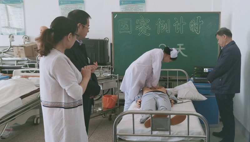 院領(lǐng)導(dǎo)高度重視此次比賽,全力支持大賽工作,時刻關(guān)注賽前訓(xùn)練情況。學(xué)院黨委書記趙明、副院長翟存祥、教務(wù)處處長仲生仁多次到訓(xùn)練現(xiàn)場觀看選手操作,并提出指導(dǎo)性的意見和建議。趙書記充分肯定了老師們的辛勤付出,要求輔導(dǎo)教師在訓(xùn)練中一定要堅持高標(biāo)準(zhǔn)、嚴(yán)要求;鼓勵選手發(fā)揮潛能,賽出水平,實(shí)現(xiàn)新的突破。護(hù)理系成立了以黨總支書記張建輝、系主任韓曉萍牽頭,由專業(yè)教師組成大賽輔導(dǎo)小組,認(rèn)真解讀競賽規(guī)程,周密安排訓(xùn)練計劃,強(qiáng)化理論知識,細(xì)化操作項(xiàng)目,力爭在此次大賽中取得好成績。