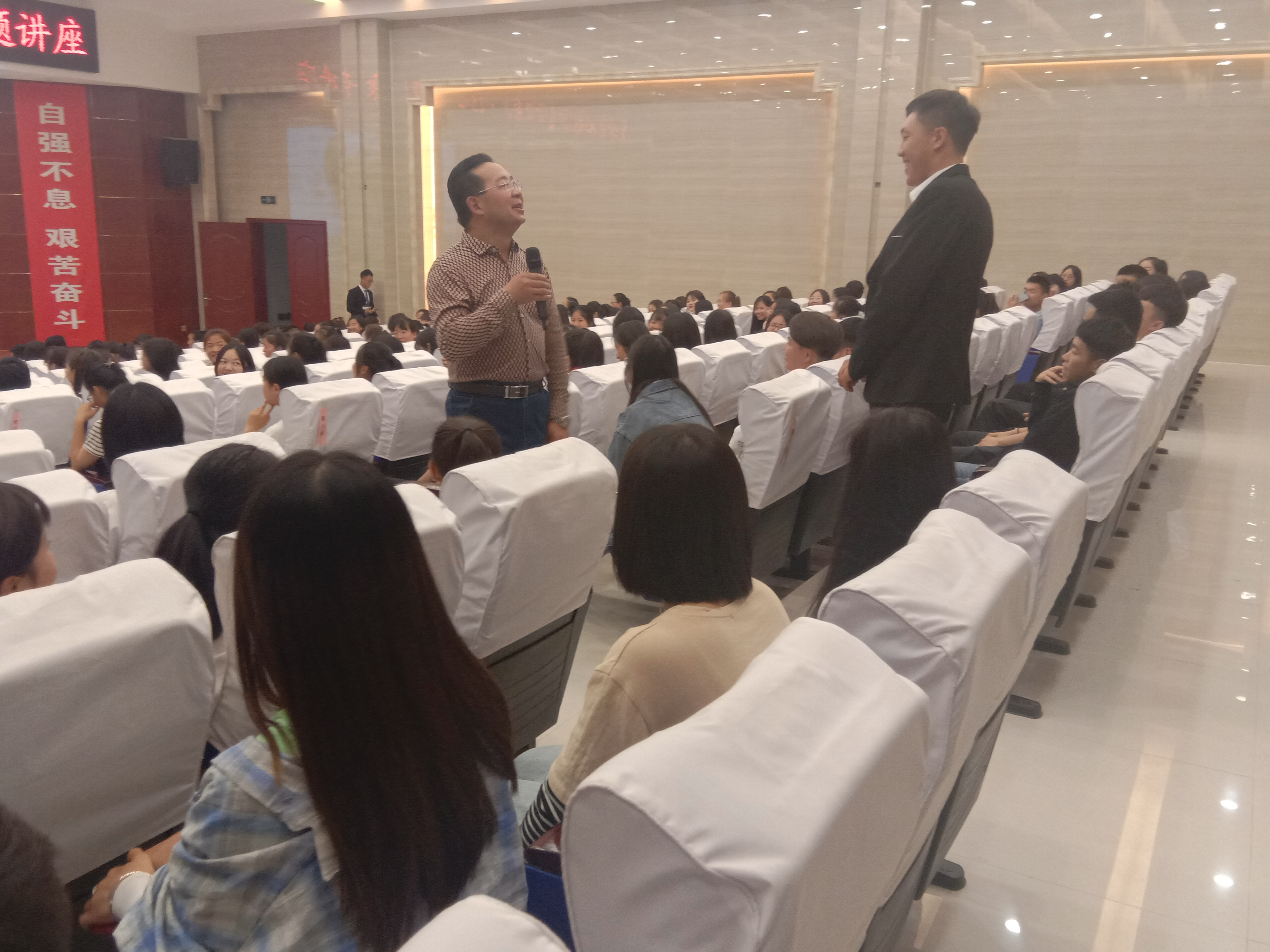 金玉龍首先提出了一個問題:什么是愛情?這個看似簡單的問題卻使在場學(xué)生紛紛陷入思考。接著金玉龍和現(xiàn)場同學(xué)一起做游戲并通過引用有關(guān)愛情的名言來闡釋何為愛情——明確指向某具體對象,有著明確的生理基礎(chǔ)的一種人類情感,也指基于這種情感產(chǎn)生的親密的人際關(guān)系。金玉龍列舉了很多校園愛情故事,借此教會大家分辨“愛情的可能與不可能”,他認(rèn)為真正的愛情應(yīng)遵循自愿、平等、合法、無傷的基本原則。他通過講述生動的事例以及對熱門影視劇人物感情關(guān)系的分析來解讀戀愛周期,幫助同學(xué)們更好地理解“愛情可能是什么”。講座的最后同學(xué)們踴躍提問和金老師的精彩解答掀起了本次講座的高潮,最后各位同學(xué)紛紛簽名拍照留念。