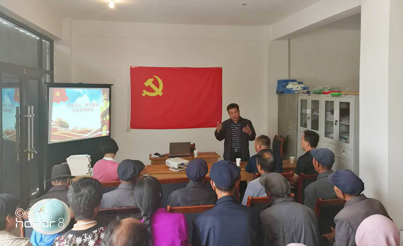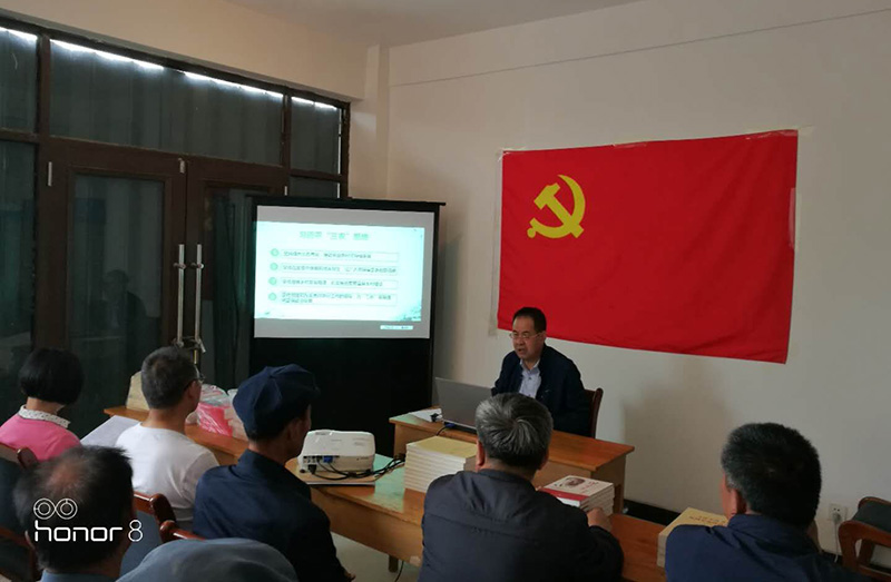 為做好抓黨建促脫貧攻堅(jiān)和加強(qiáng)基層黨組織建設(shè),6月14日,學(xué)院領(lǐng)導(dǎo)、幫扶干部來(lái)到對(duì)口幫扶的移民點(diǎn)蘆草溝村、尚家臺(tái)村村委會(huì)為村民黨員講黨課,為蘆草溝村、尚家臺(tái)村黨組織、駐村工作隊(duì)、村民黨員贈(zèng)送黨建書(shū)籍和掃黑除惡知識(shí)手冊(cè)。