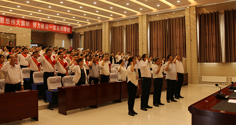 以“慶祝新中國七十華誕 弘揚(yáng)新時(shí)代尊師風(fēng)尚”為主題的教師節(jié)慶祝大會(huì)在莊嚴(yán)的《國歌》聲中拉開帷幕。學(xué)院黨委書記、院長趙明帶領(lǐng)全體教師重溫了教師誓詞,鏗鏘有力的誓詞、莊嚴(yán)的承諾,進(jìn)一步堅(jiān)定了廣大教師立德樹人的理想和信念。黨委副書記翟存祥領(lǐng)學(xué)了高校教師行為準(zhǔn)則,對(duì)高校教師行為提出了要求。