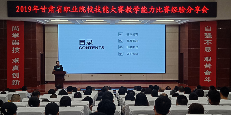 2019年全省職業(yè)院校技能大賽教學(xué)能力比賽于7月1日至7月5日在甘肅省交通職業(yè)技術(shù)學(xué)院舉行,學(xué)院6件作品23名教師參加比賽,并取得了優(yōu)異的成績。7月8日學(xué)院舉辦了比賽經(jīng)驗分享會,各相關(guān)部門、單位負責(zé)人、中青年骨干教師、兼職教師、教務(wù)處和項目辦相關(guān)人員共210多名教師參加。