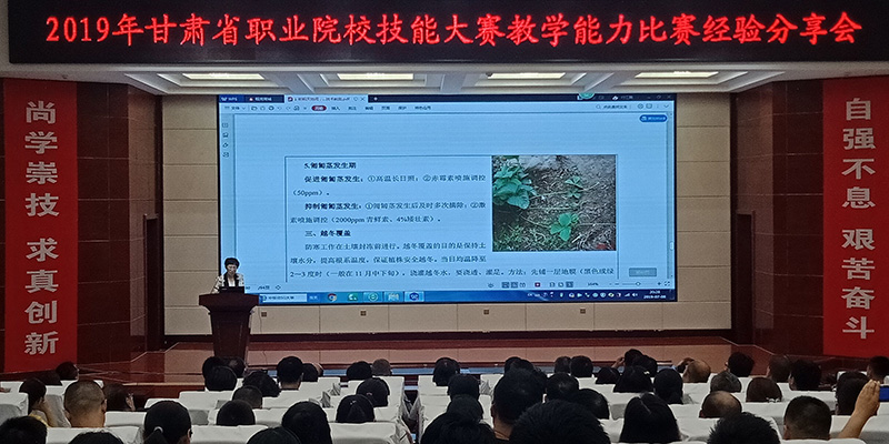 分享會由翟存祥副院長主持,并就本次參賽意義作了深刻點評,鼓勵中青年骨干教師積極參賽,以賽促學(xué)、以賽促教。教務(wù)處副處長張世亮介紹了甘肅省2019年職業(yè)院校技能大賽教學(xué)能力比賽規(guī)則和基本流程。邀請參賽優(yōu)秀教師團隊分享參賽作品《耕耘天地間 綠色齊分享》《聲傳意調(diào)頌情 傳播中國聲音》和《堅守規(guī)則 守護生命安全》,展示教學(xué)資料、模擬現(xiàn)場比賽過程、分享比賽經(jīng)驗。