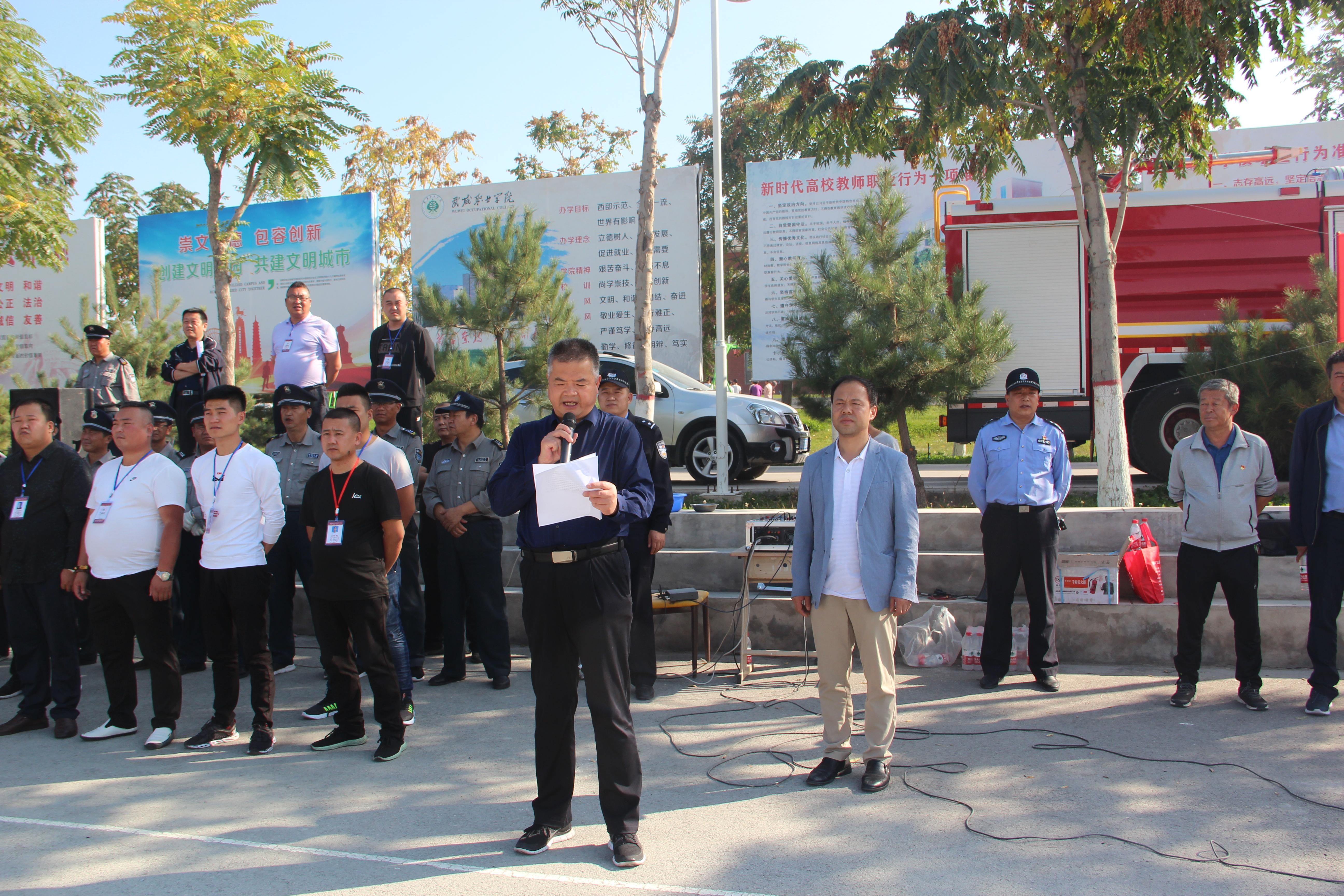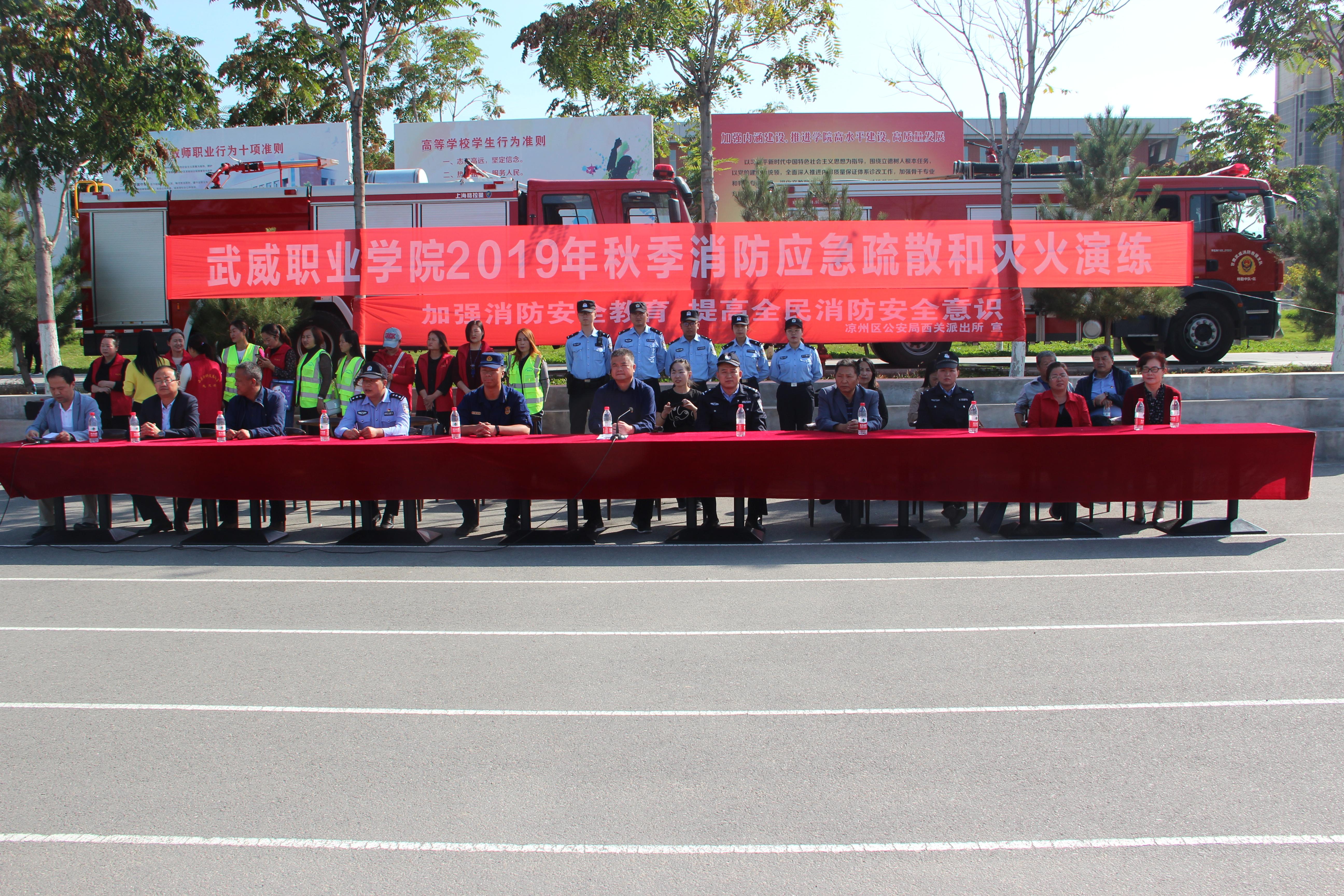 9月25日下午,學(xué)院聯(lián)合武威市消防支隊(duì)舉行了2019年秋季消防應(yīng)急疏散和滅火演練活動(dòng)。學(xué)院副院長(zhǎng)王守云擔(dān)任總指揮,保衛(wèi)處、學(xué)生工作處、各系負(fù)責(zé)同志及轄區(qū)派出所民警、街道社區(qū)工作人員現(xiàn)場(chǎng)觀摩了演練,約4000多名2019級(jí)新生及學(xué)生管理工作人員、食堂工作人員參加了演練?。