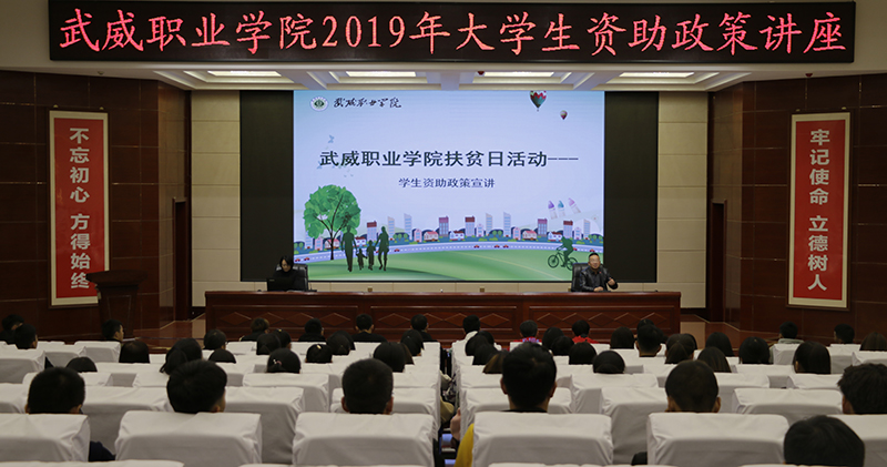 10月17日是第六個國家扶貧日。當(dāng)天,我院學(xué)生工作處和工會在大學(xué)生活動中心菁英廳聯(lián)合組織舉行了“武威職業(yè)學(xué)院2019年大學(xué)生資助政策講座”,學(xué)生資助管理中心張海霞老師做講座。中科低碳新能源技術(shù)學(xué)院學(xué)生代表和學(xué)院各系學(xué)生代表共220名參加了活動,講座活動由工會主席金玉龍主持。