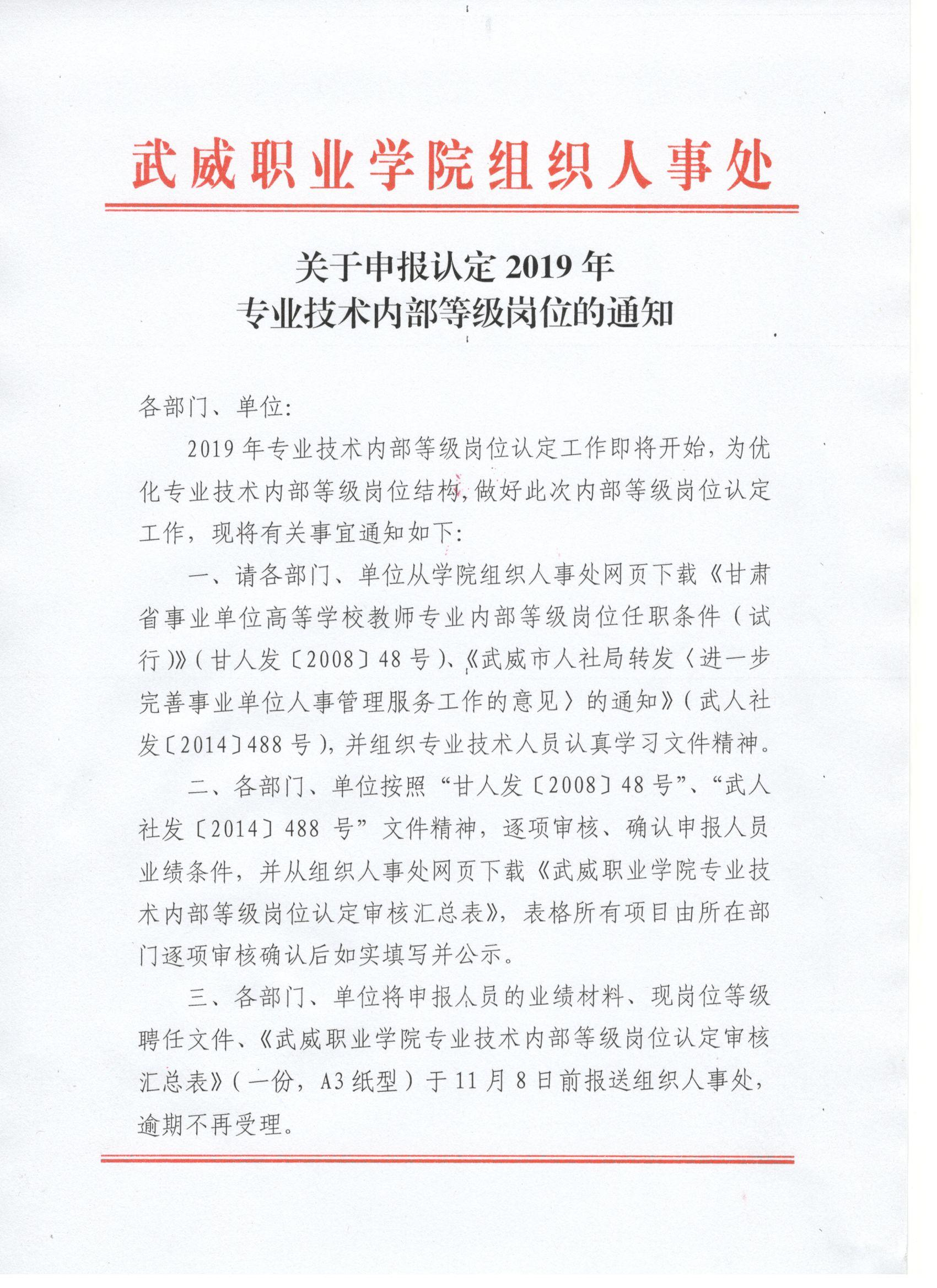 關于申報認定2019年專業(yè)技術內(nèi)部等級崗位的通知