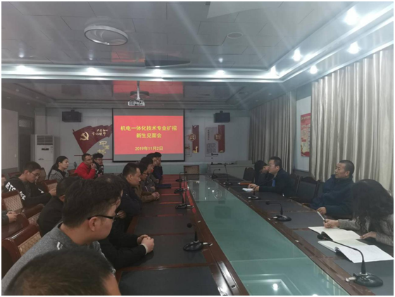 11月2日,機(jī)械制造系在博學(xué)樓黨員活動(dòng)室組織召開(kāi)了2019機(jī)電一體化技術(shù)專業(yè)擴(kuò)招新生見(jiàn)面會(huì)。黨總支書(shū)記梁忠,班主任徐寶,任課教師以及全體新生參加了會(huì)議。