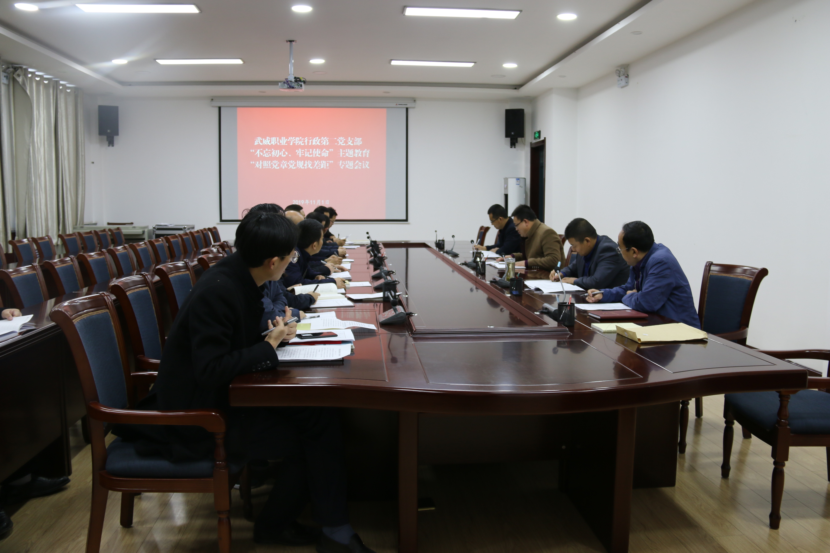 11月1日下午,行政第二黨支部在行樹樓二樓會(huì)議室召開“不忘初心、牢記使命”主題教育對(duì)照黨章黨規(guī)找差距專題會(huì)議。支部書記王繼林主持會(huì)議,行政第二黨支部全體黨員參加會(huì)議。