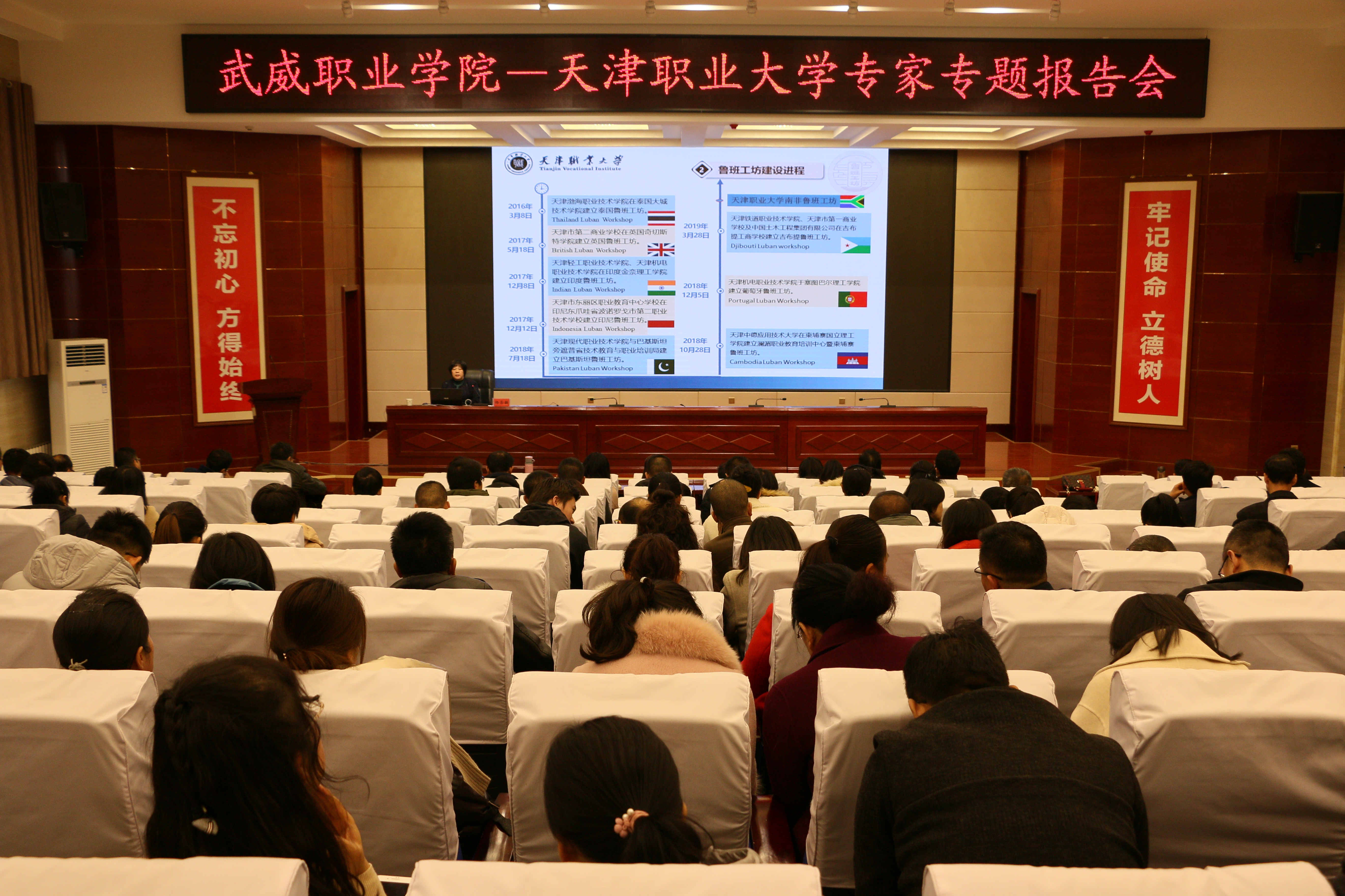 11月20日上午,武威職業(yè)學(xué)院“綠洲講壇”第28期在學(xué)院菁英廳舉行,本期活動邀請到天津職業(yè)大學(xué)校長楊榮敏作主題為“魯班工坊—中國職業(yè)教育國際知名品牌”的報告。學(xué)院領(lǐng)導(dǎo)班子、中層干部、教師代表220余人參加了報告會。本期講壇由學(xué)院黨委書記、院長趙明主持。