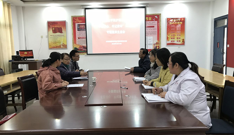 根據(jù)學院《關于基層黨組織召開“不忘初心、牢記使命”專題組織生活會和開展民主評議黨員的通知》要求,12月9日下午,護理系教師黨支部和學生黨支部分別在明遠樓103、224教室召開了“不忘初心、牢記使命”專題組織生活會,全體黨員以及入黨積極分子參加會議。