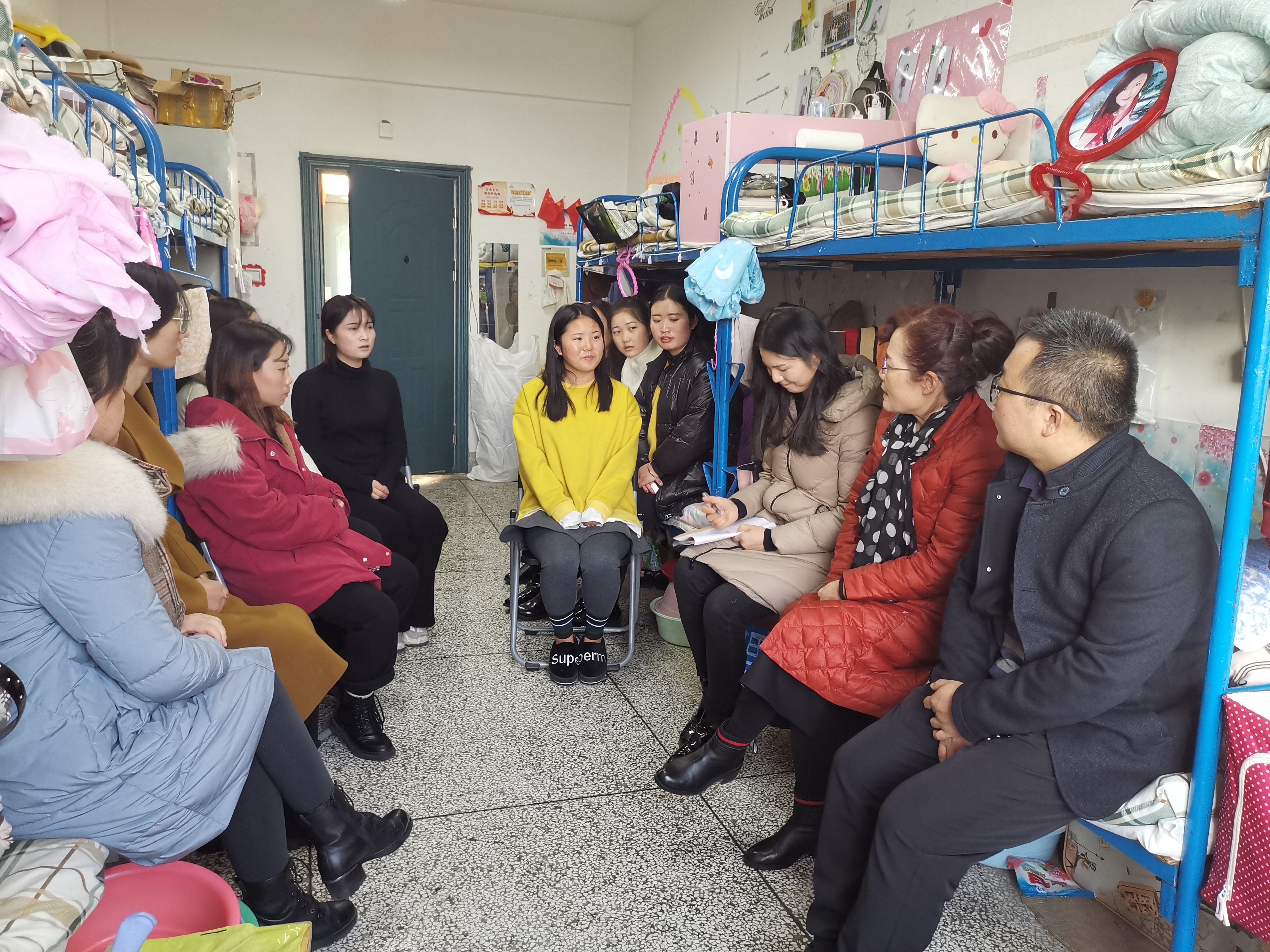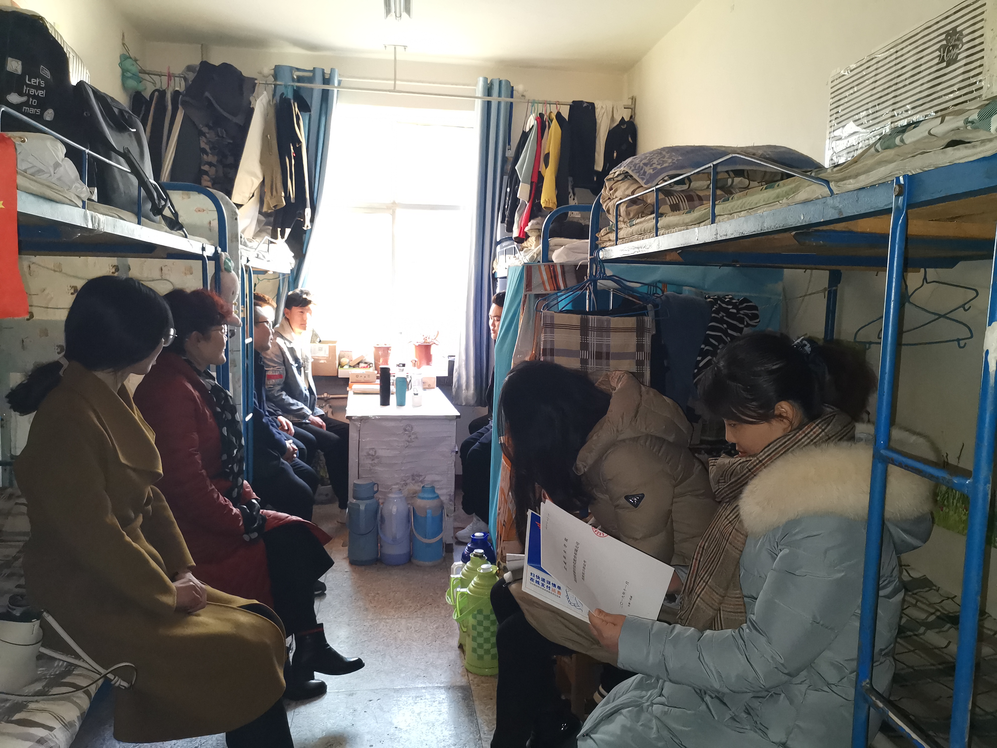 黨員在女生宿舍進(jìn)行調(diào)研