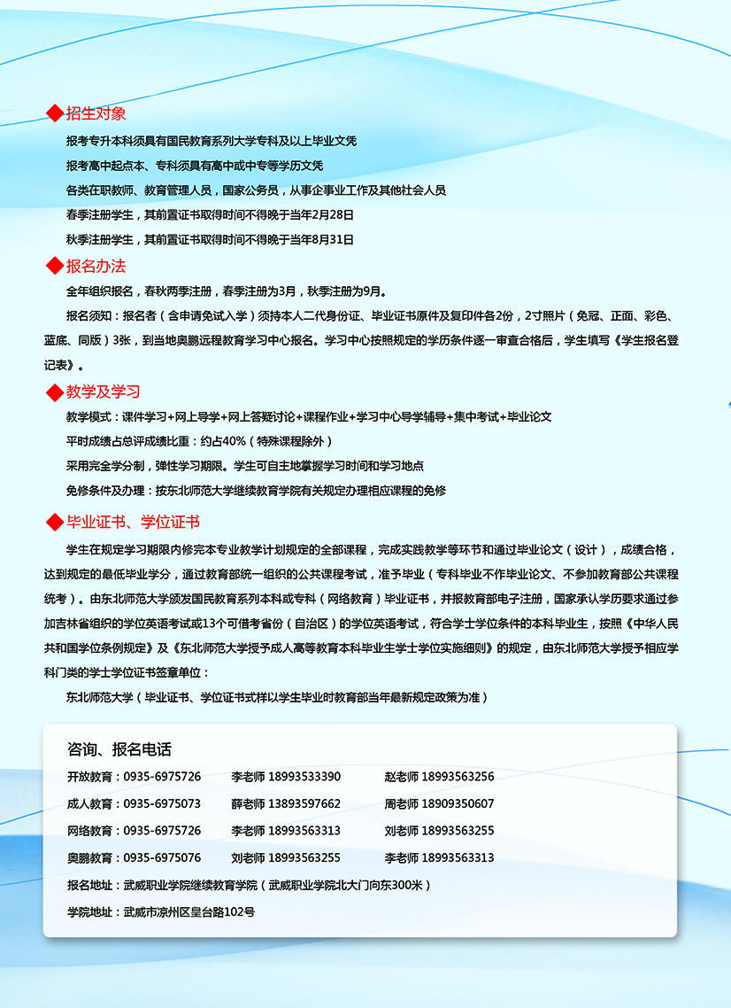 武威職業(yè)學(xué)院繼續(xù)教育學(xué)院2019年招生簡章