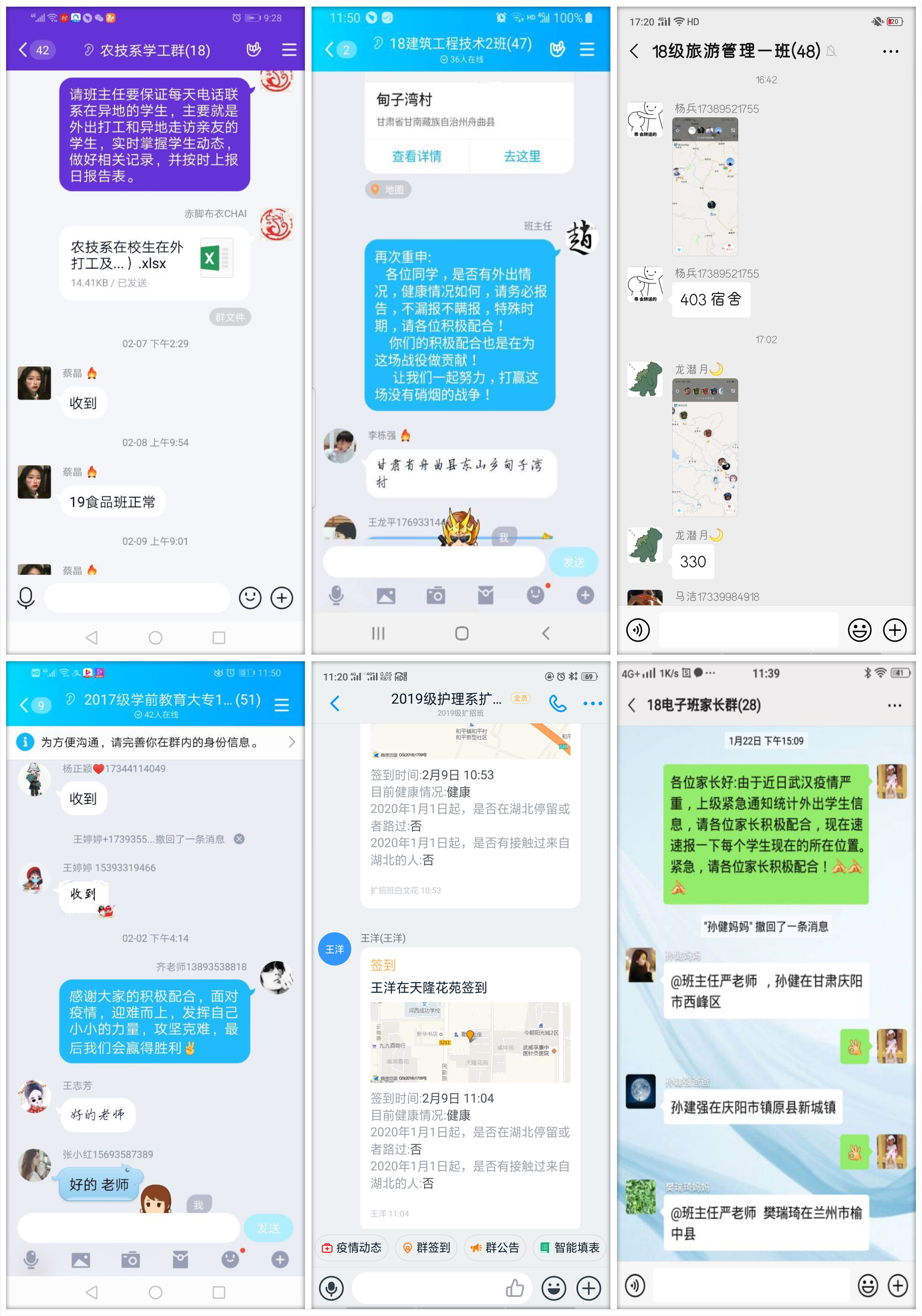 ▲輔導(dǎo)員、班主任在班級(jí)群和家長(zhǎng)群中收集學(xué)生信息