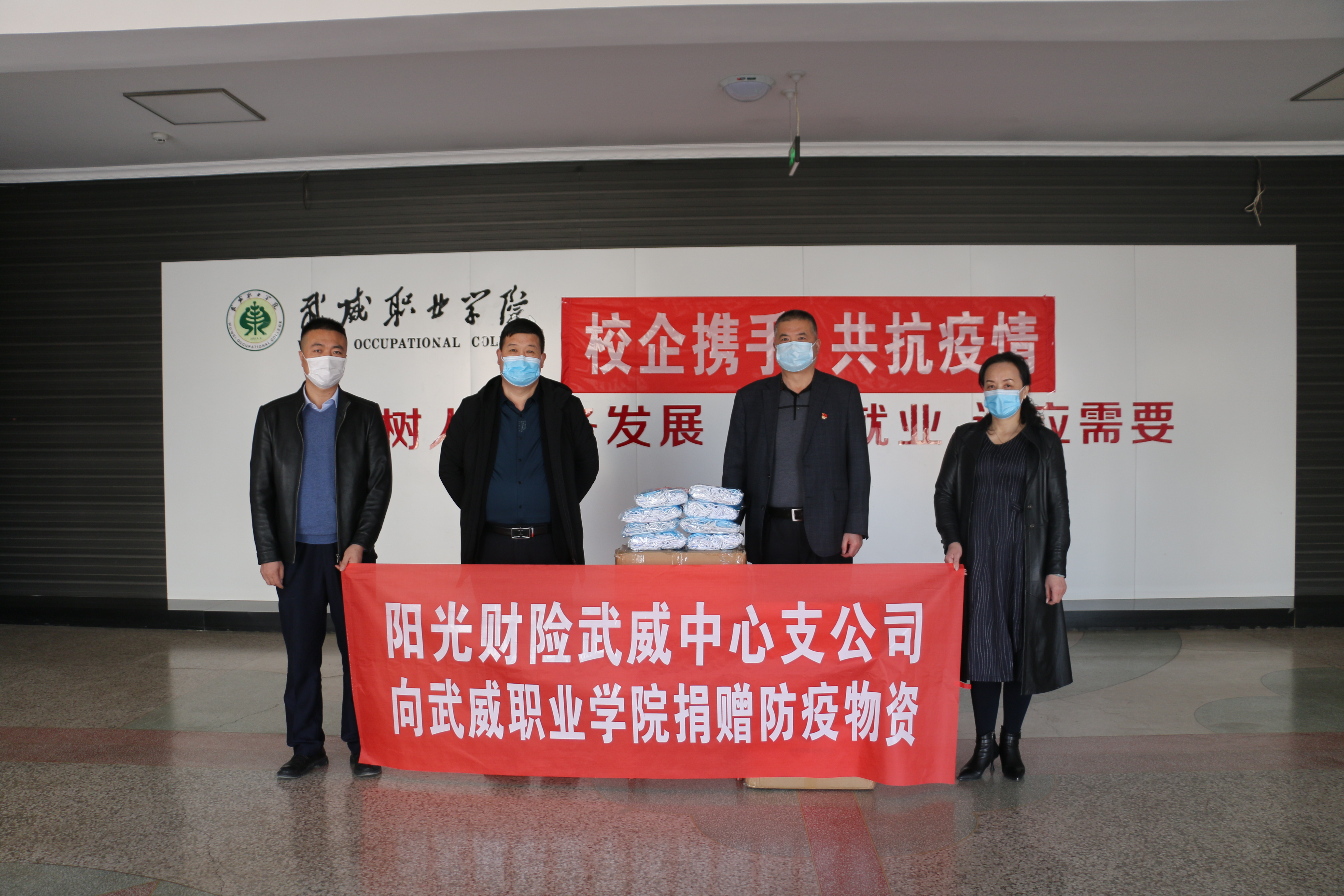陽光財(cái)產(chǎn)保險(xiǎn)股份有限公司武威中心支公司向?qū)W院捐贈新冠肺炎疫情物資,捐贈一次性醫(yī)用口罩5000個(gè)。
